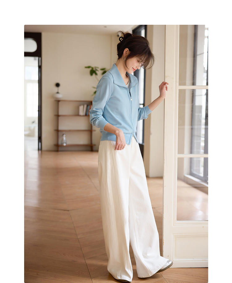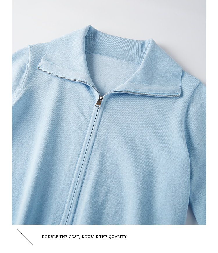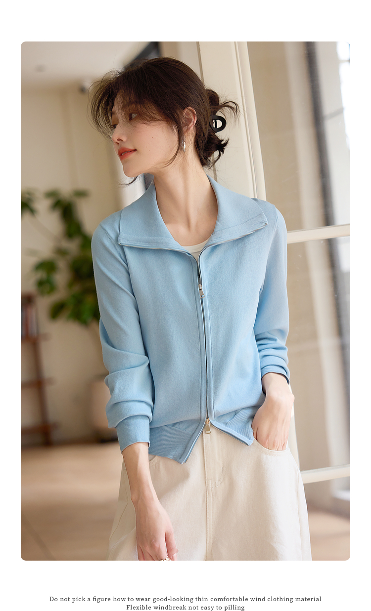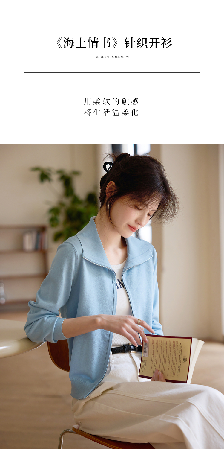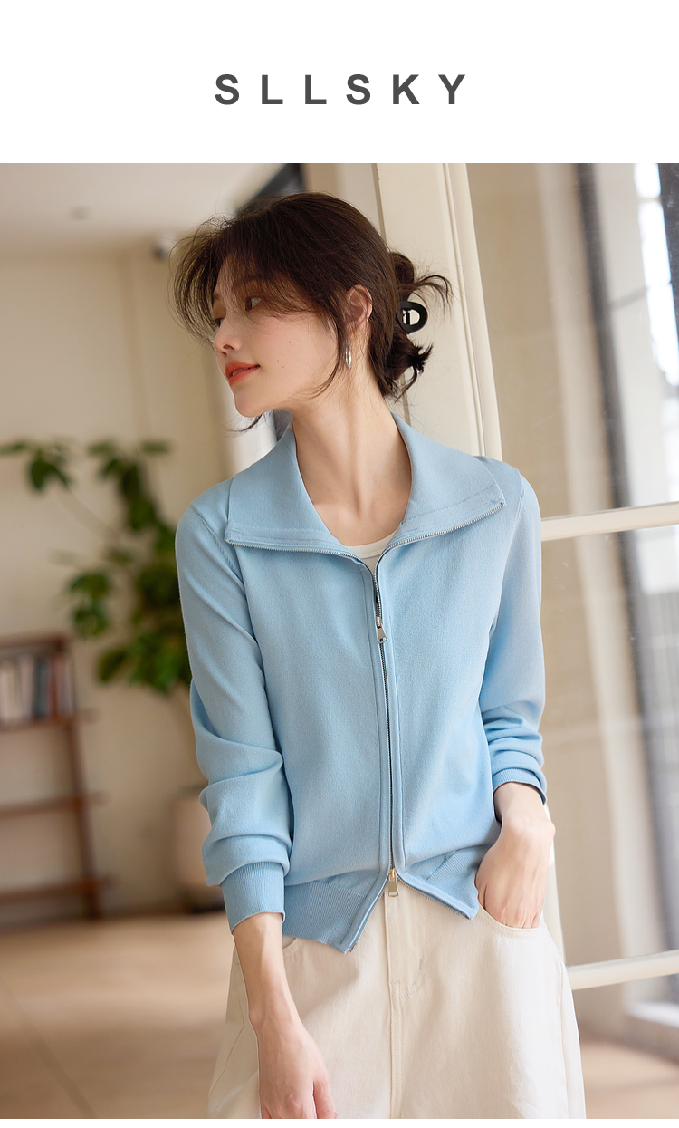 【专属特价】熙世界薄荷蓝双拉链翻领针织衫女设计感休闲开衫外套2025春装新款