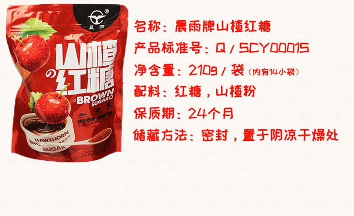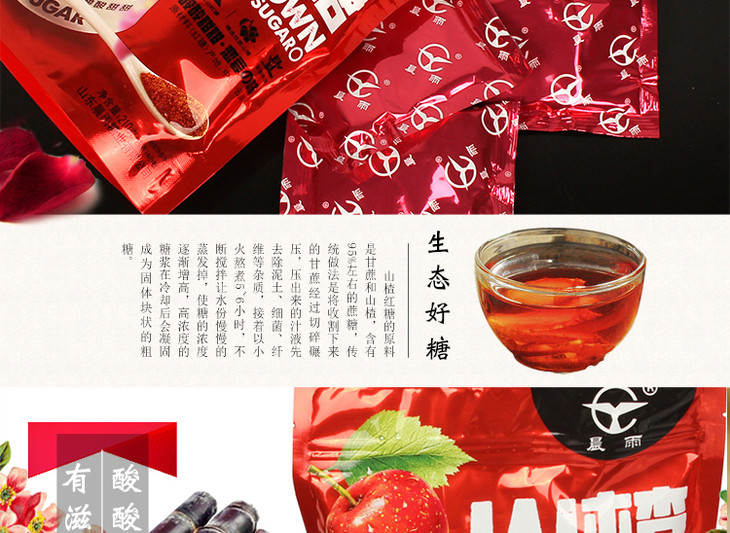 晨雨山楂红糖210g/袋 酸甜可口 酸甜开胃 口感浓郁 独立小包装 包邮 优质山楂 甘蔗 红糖