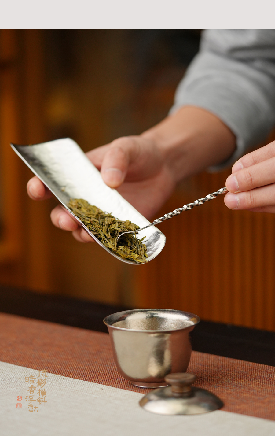暗香疏影/纯钛茶则/收纳巾 纯钛银色茶则茶拨取茶器功夫茶具醒茶器茶道配件