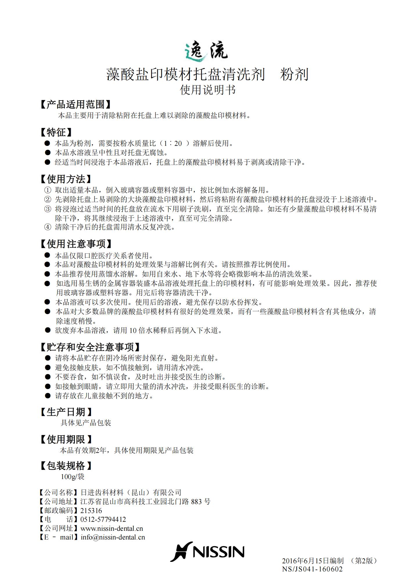 藻酸盐印模材料托盘清洗剂 粉剂100g 日进