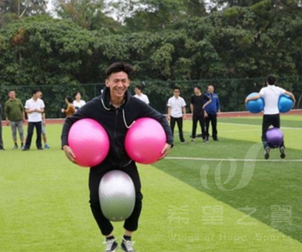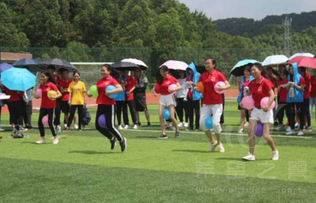 参与者两腿之间与手臂之间夹三个气球,走路会成企鹅的样子,从起点走到终点,并把气球压爆。参与者以团队形式进行。最终看那对在最短时间内所有队员完成项目。