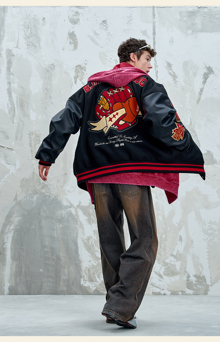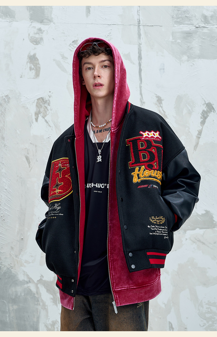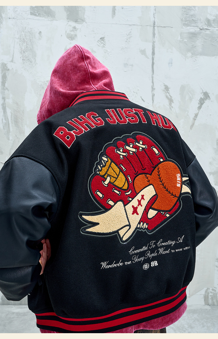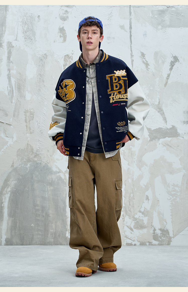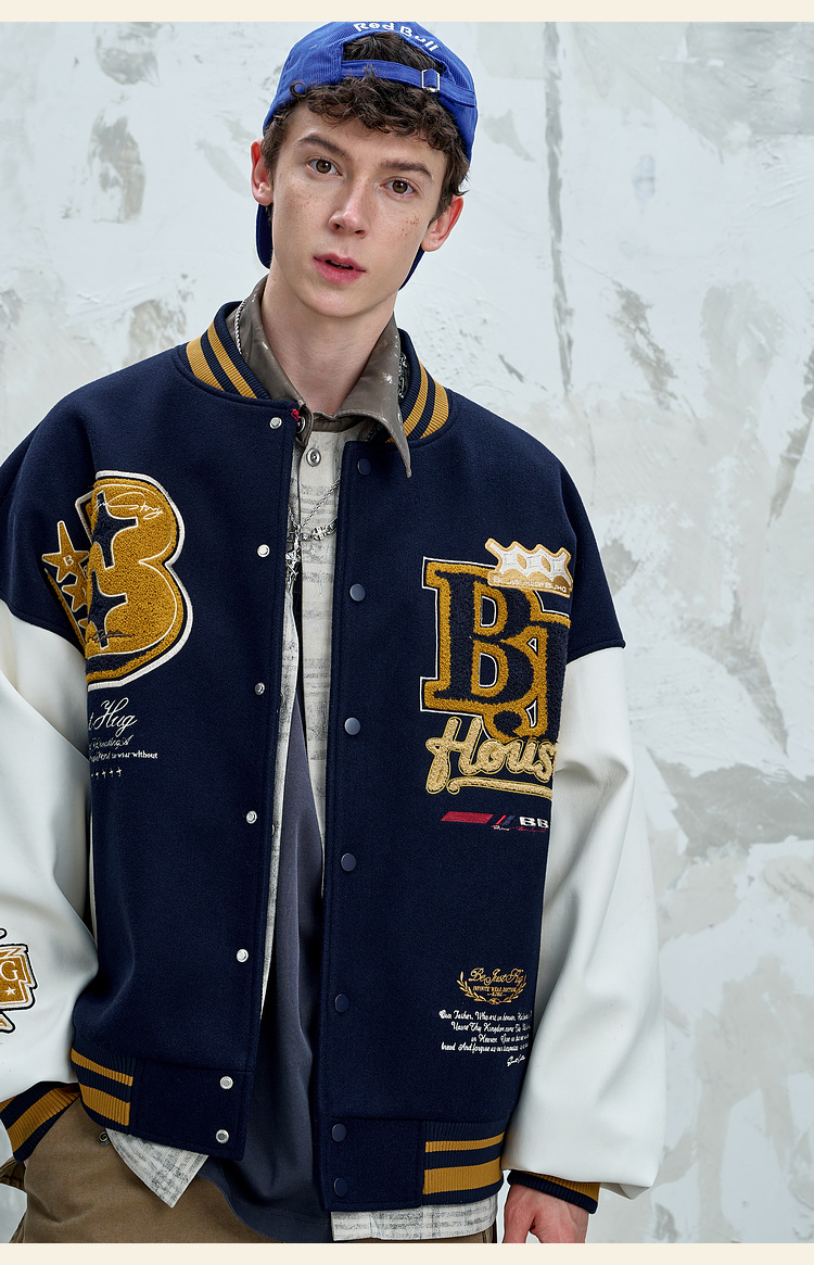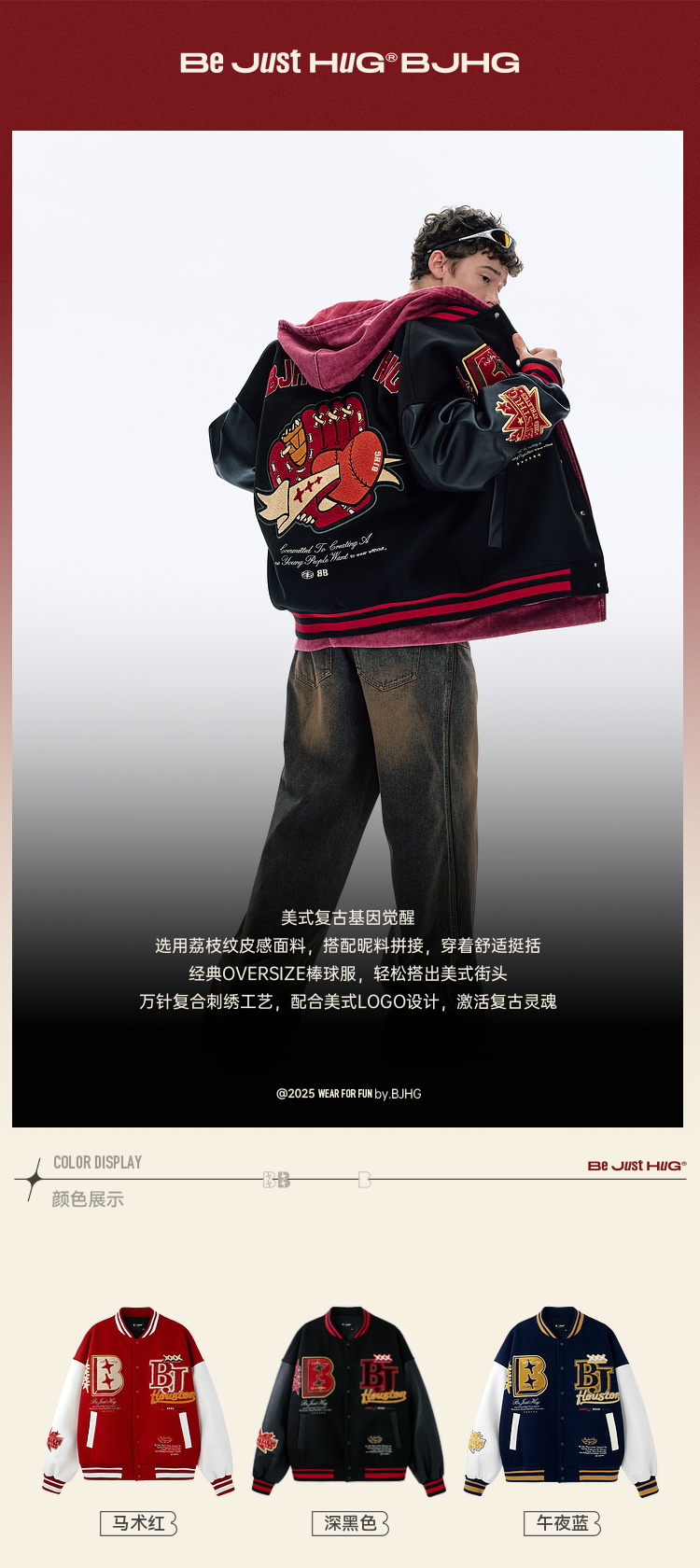 BJHG不计后果美式复古棒球服外套男款秋季撞色刺绣重磅棒球服夹克