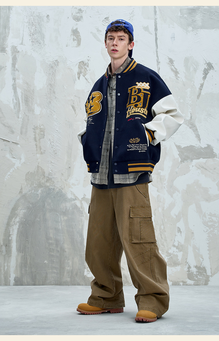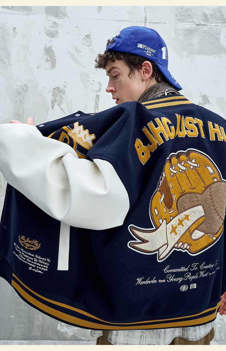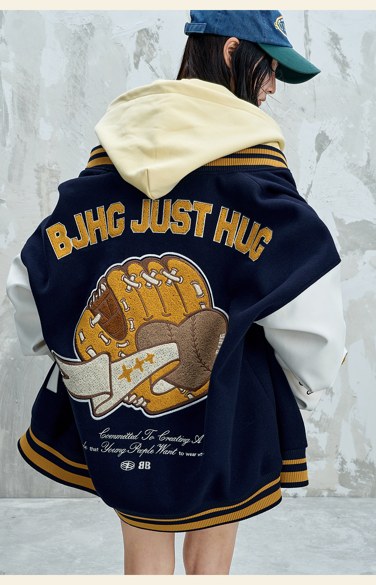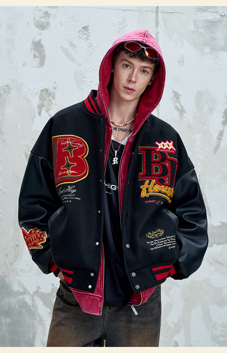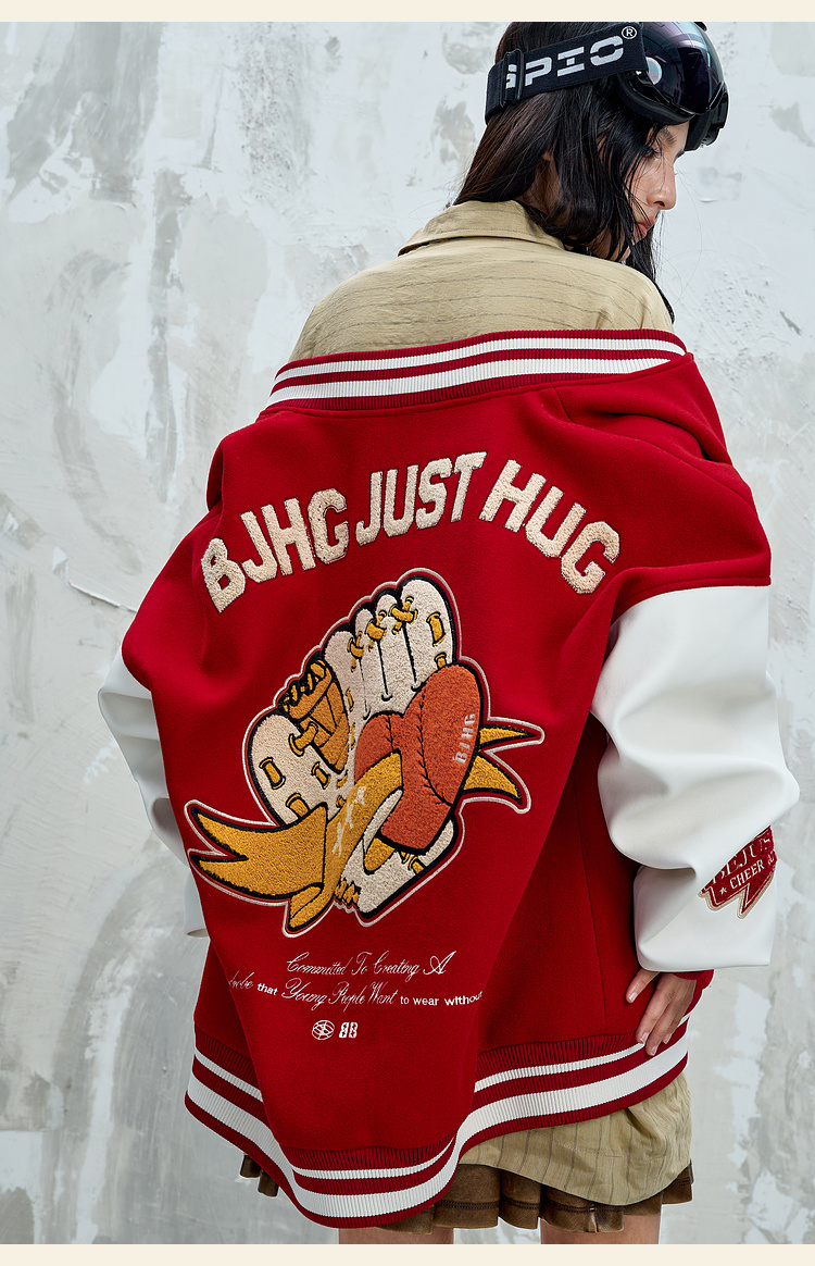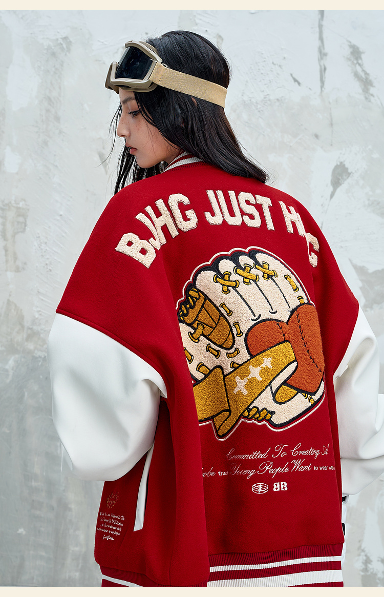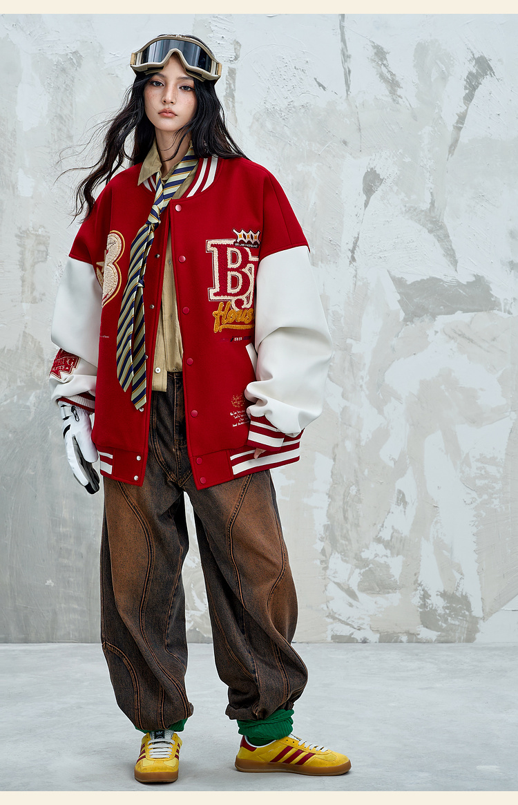 BJHG不计后果美式复古棒球服外套男款秋季撞色刺绣重磅棒球服夹克