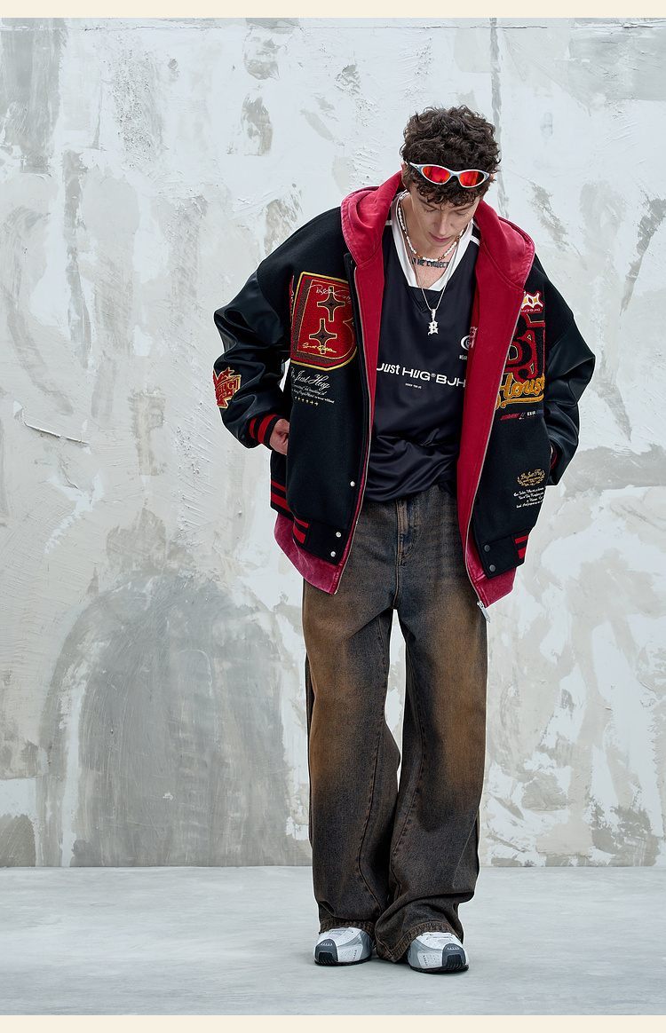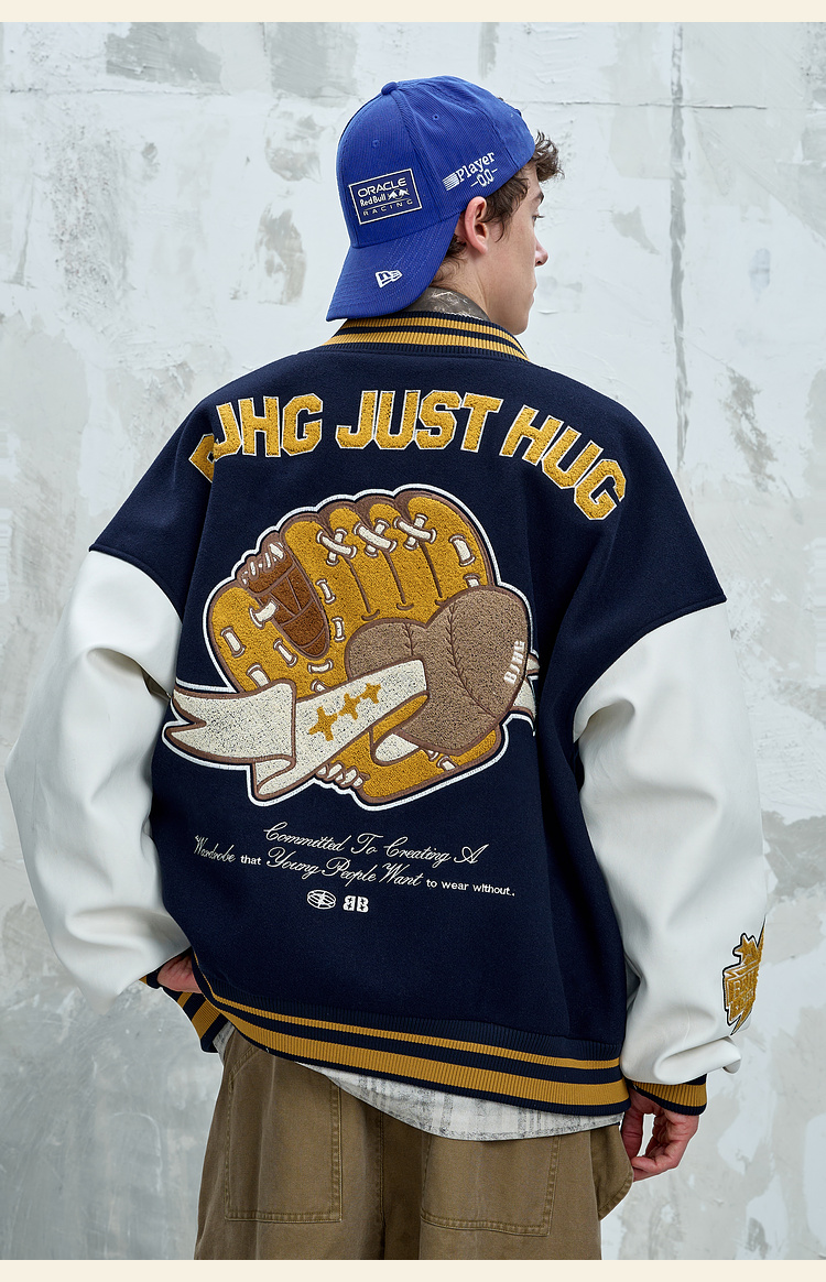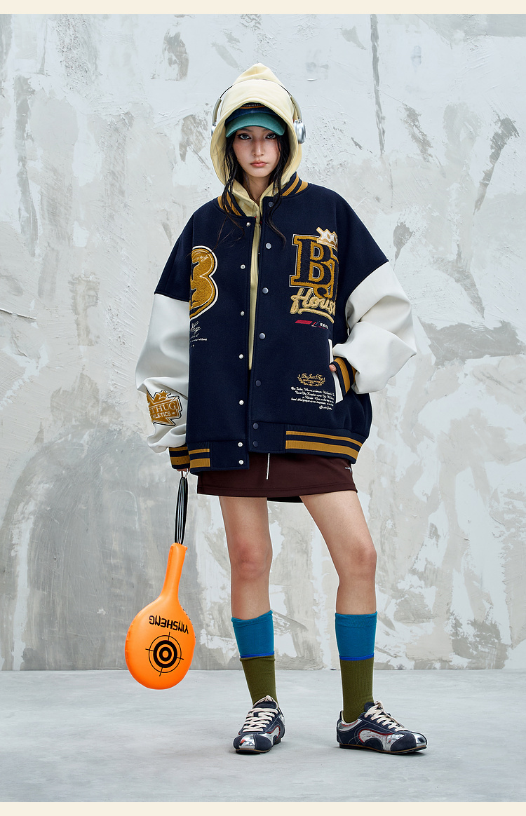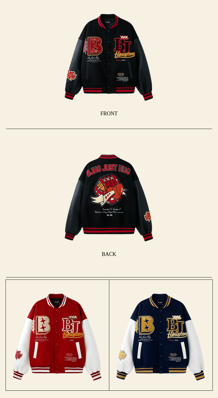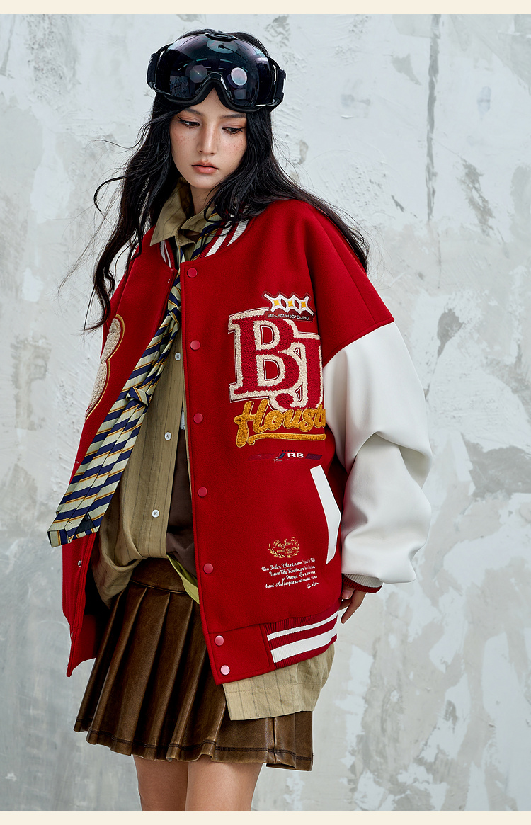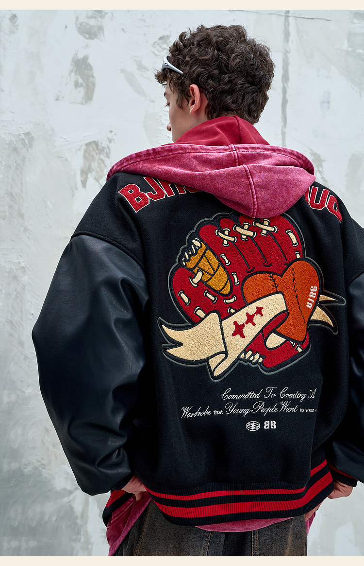 BJHG不计后果美式复古棒球服外套男款秋季撞色刺绣重磅棒球服夹克