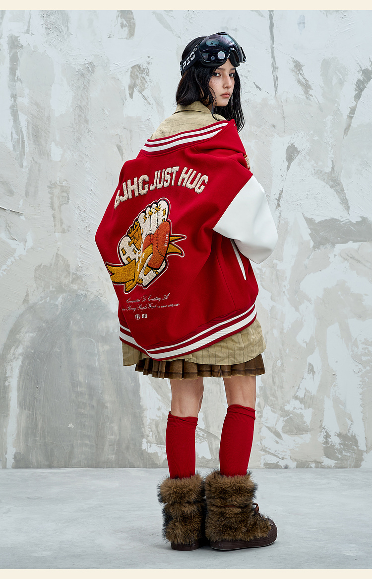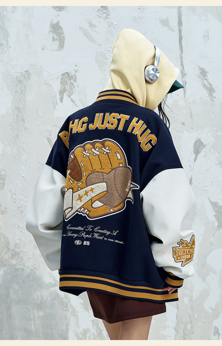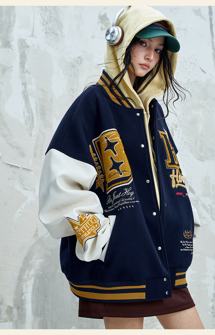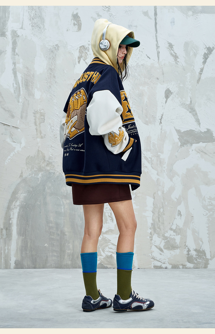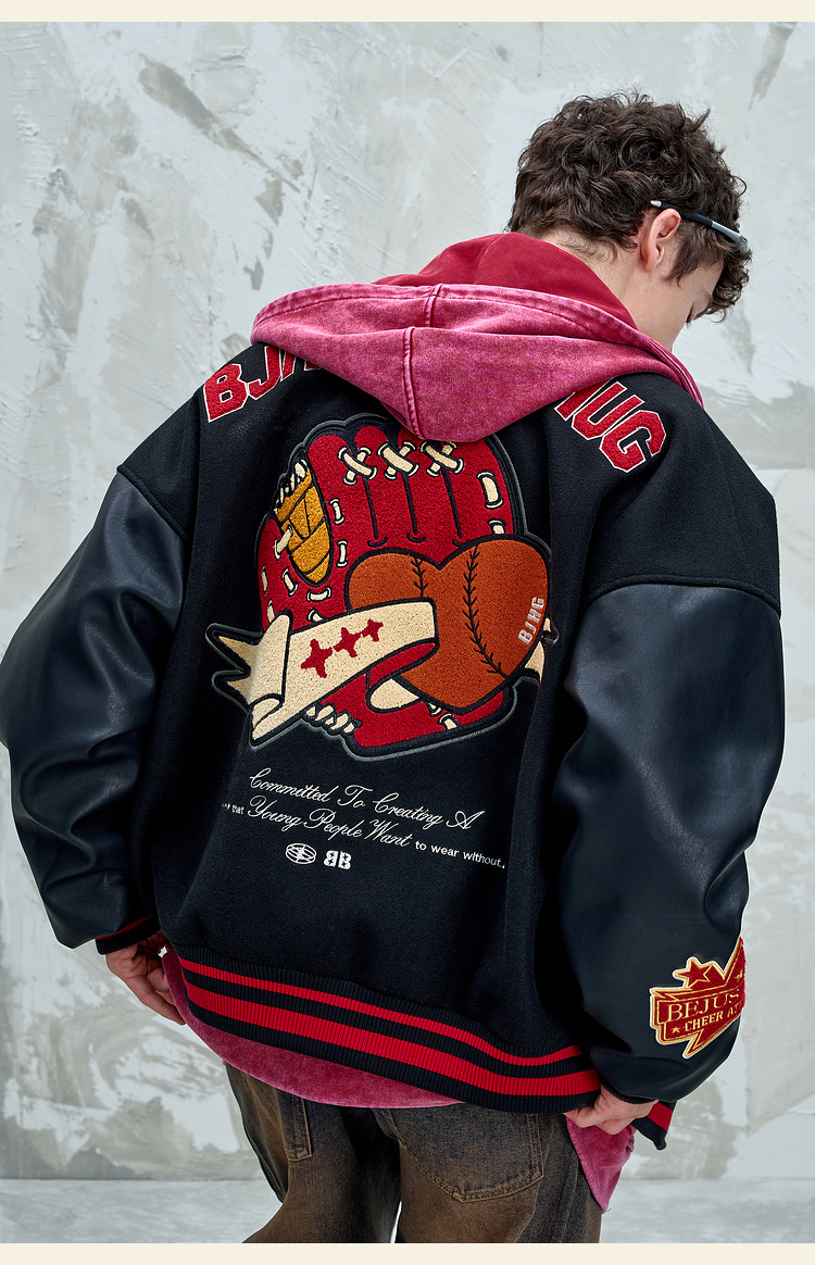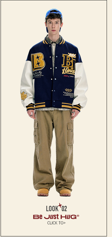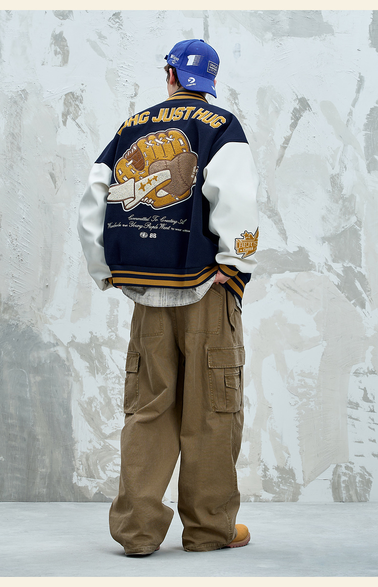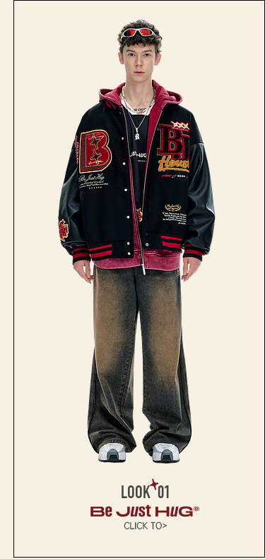 BJHG不计后果美式复古棒球服外套男款秋季撞色刺绣重磅棒球服夹克