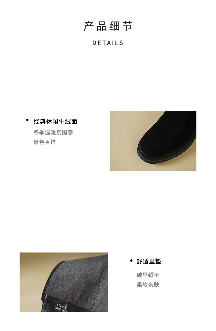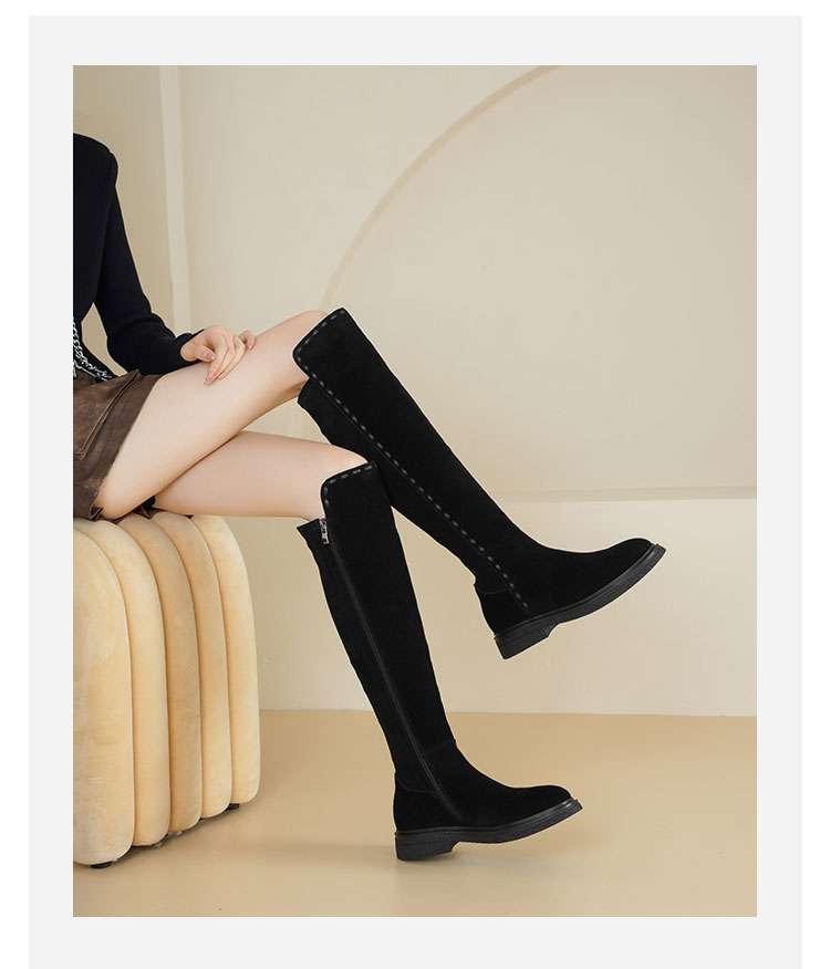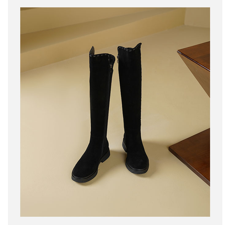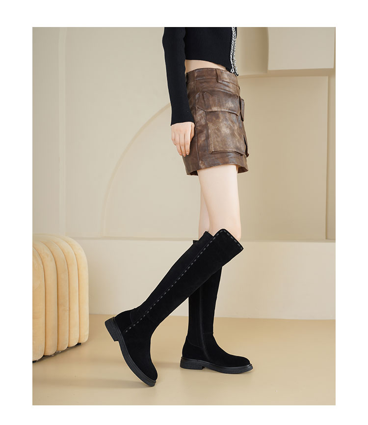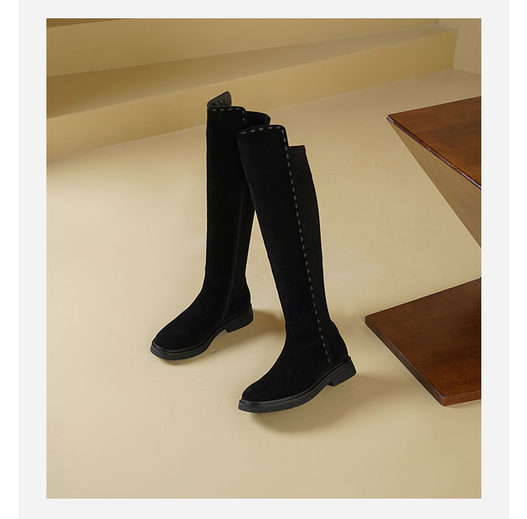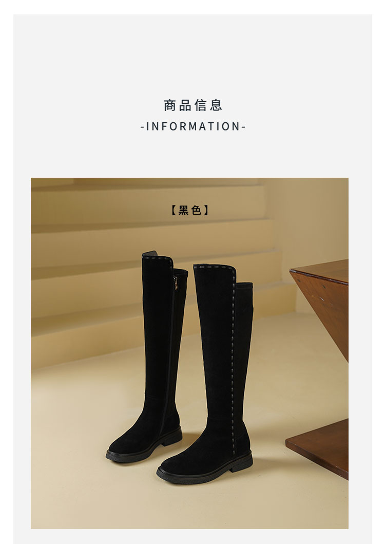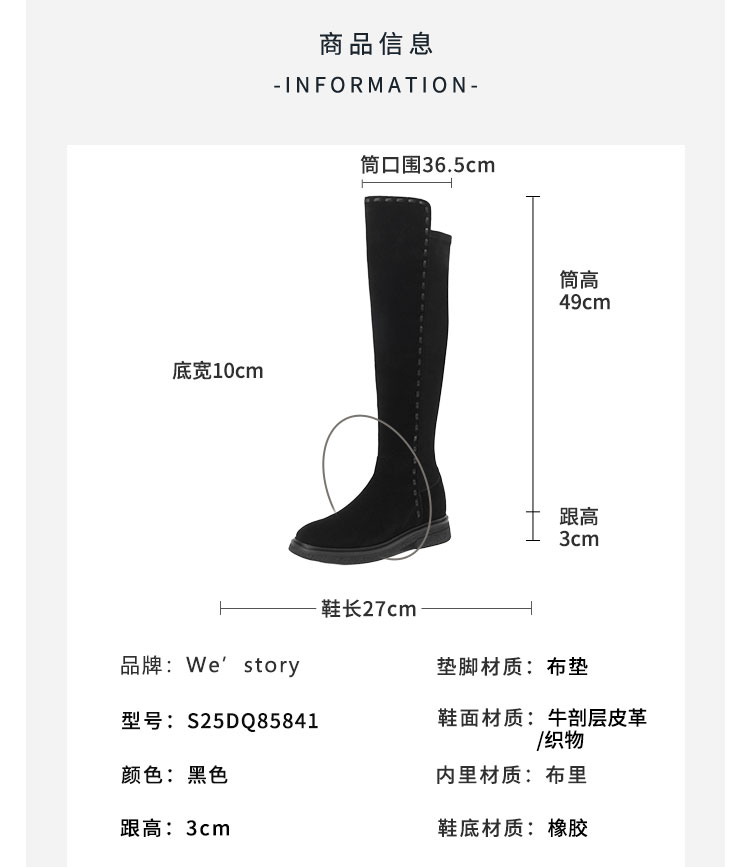 Westory2025年冬季牛绒圆头厚底拼接弹力收腿高靴S25DQ85841