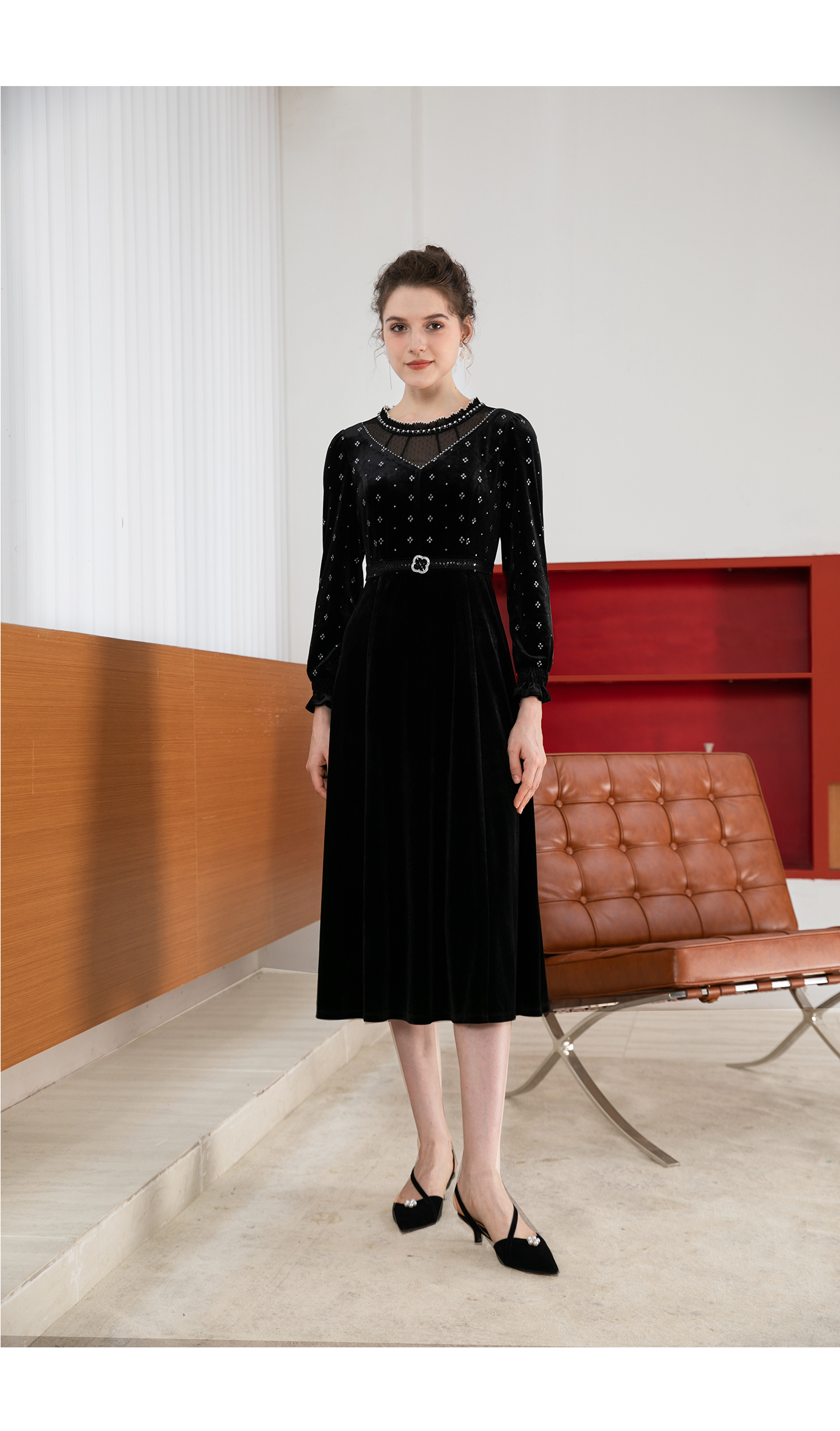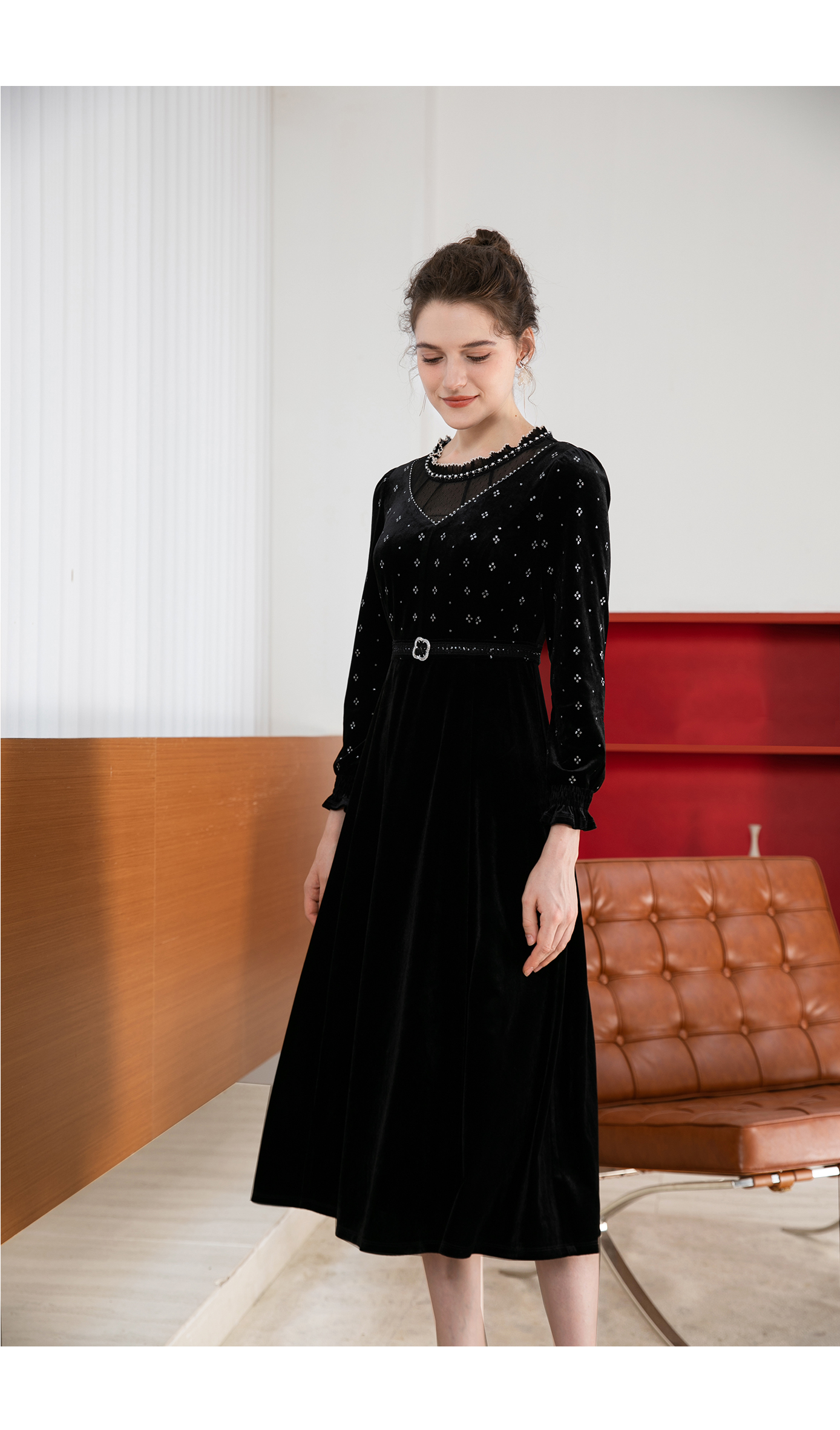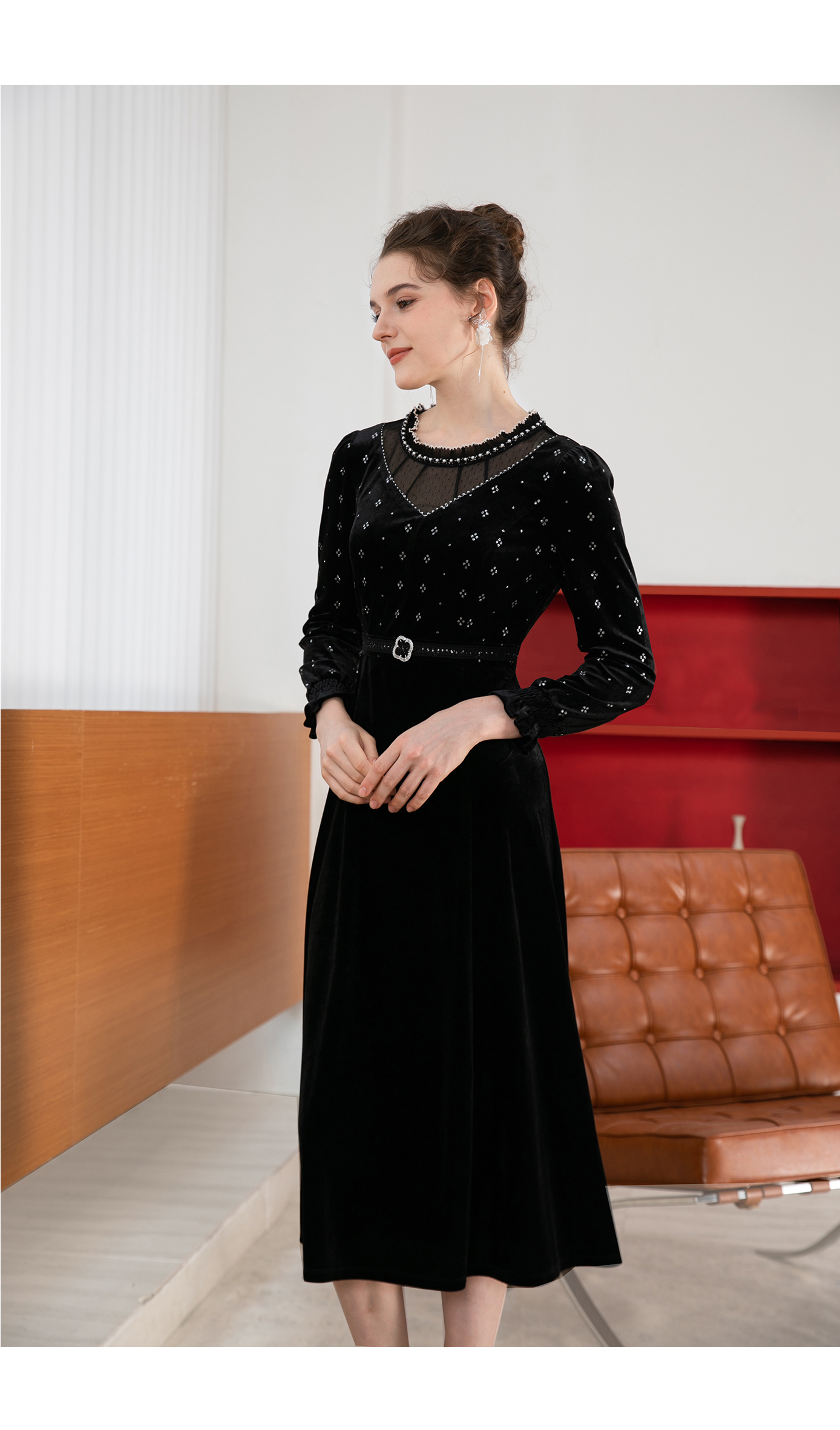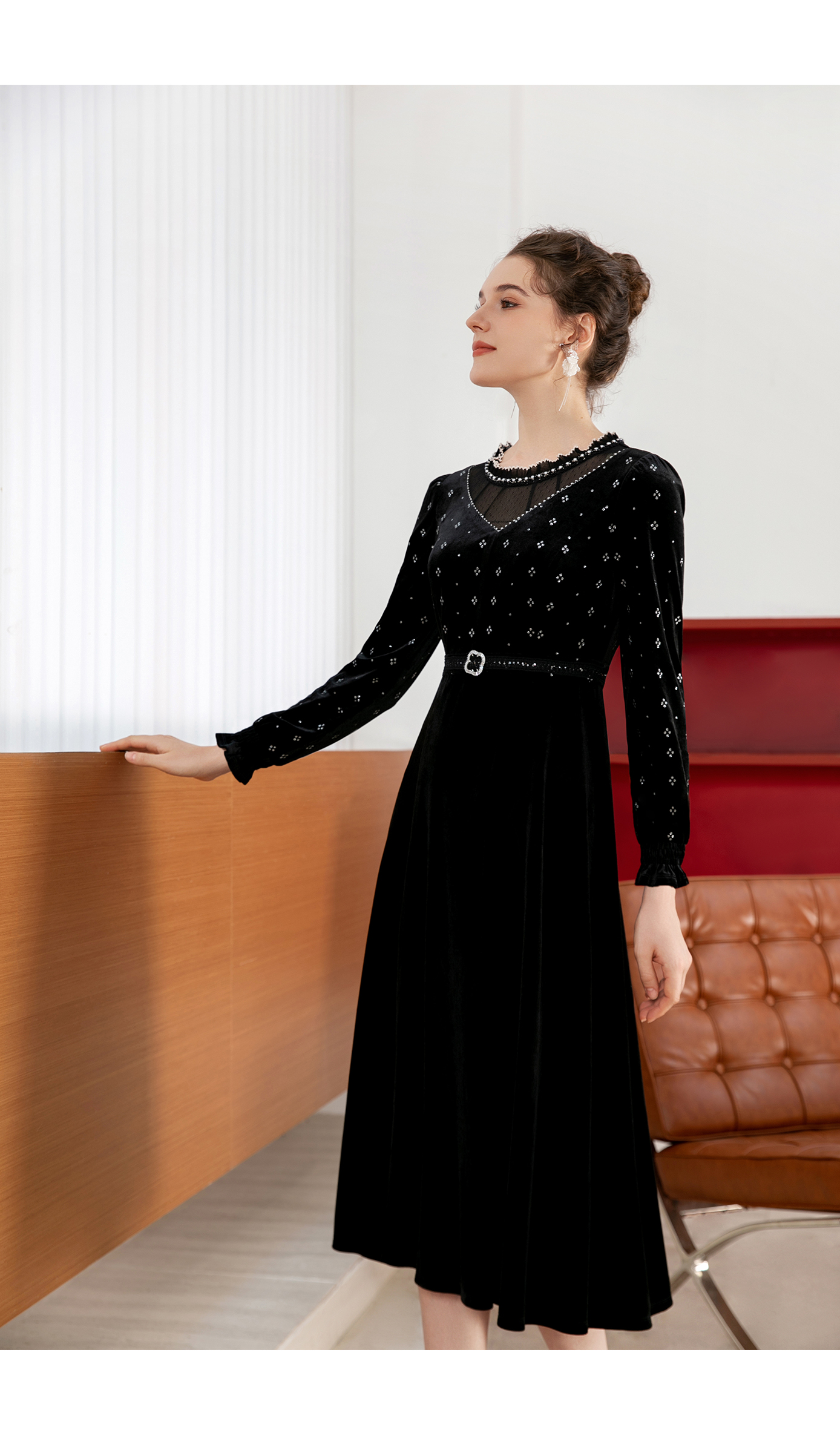 司歌丝绒长袖连衣裙秋冬修身显瘦A901132X
