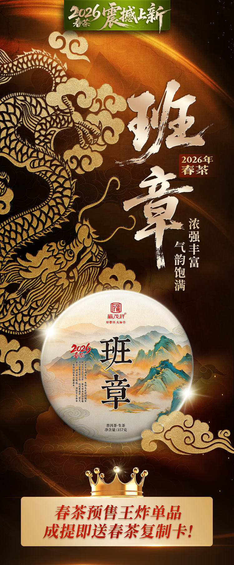 即将售罄!!2026年春茶预售【班章】勐海班章春茶357g/饼