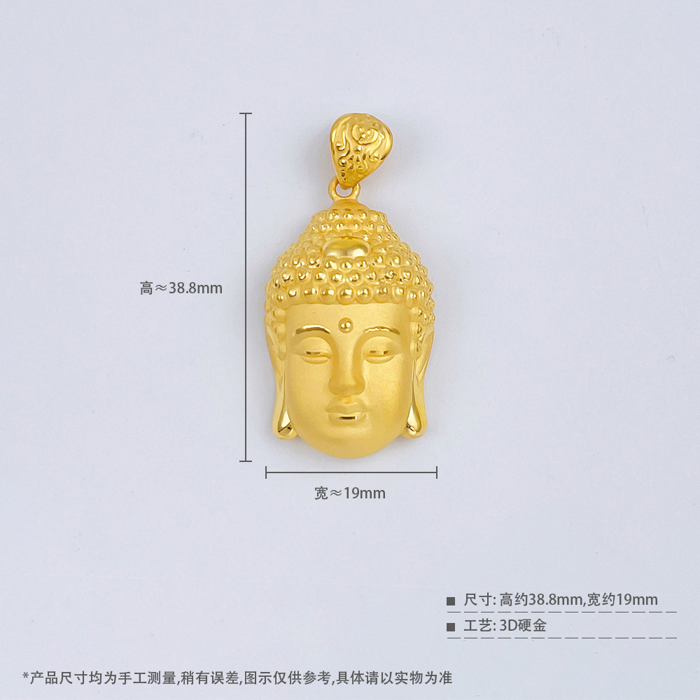 【限时克减150元】足金 【精品】3D硬金空心佛头吊坠(AR3DDZ00009-4)预售产品下单后不退款不退货不换货不补差价