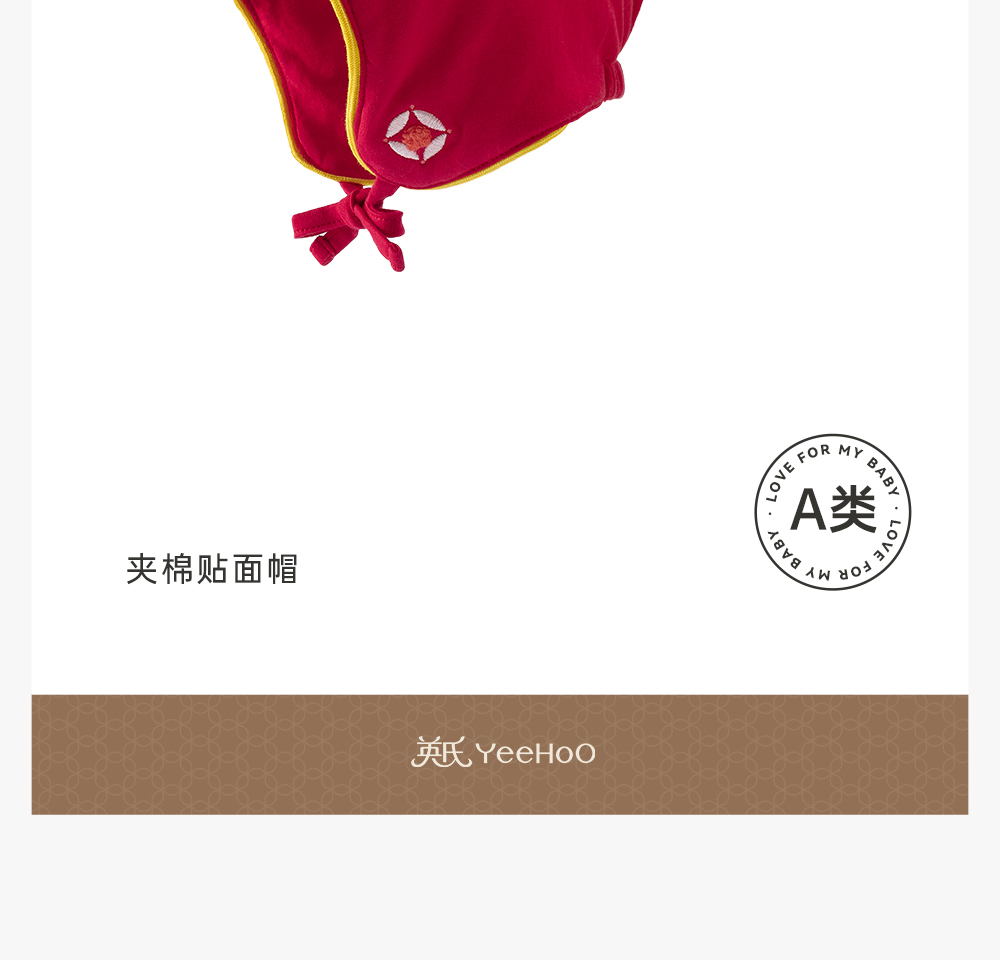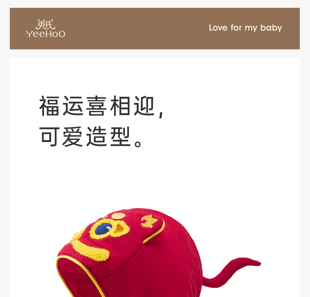 英氏宝宝夹棉贴面帽温暖秋季国风帽子2023秋冬新款YZJKJ3P007A