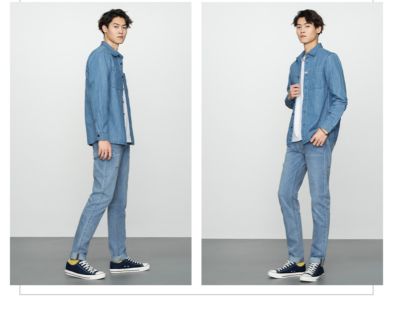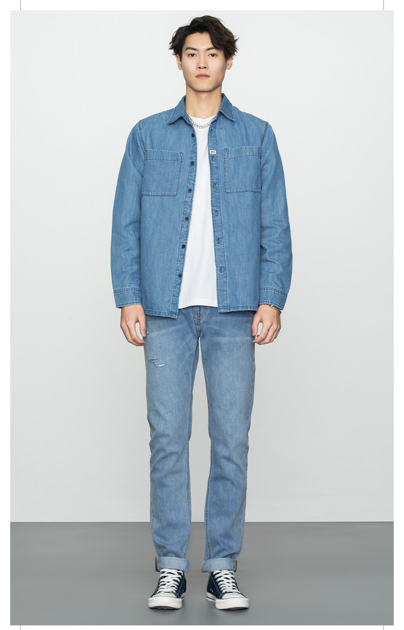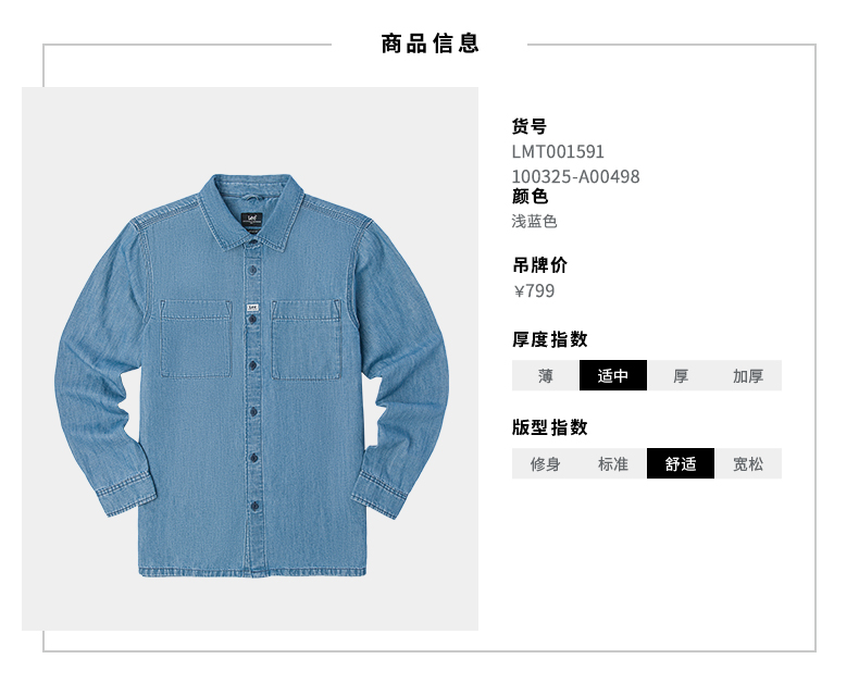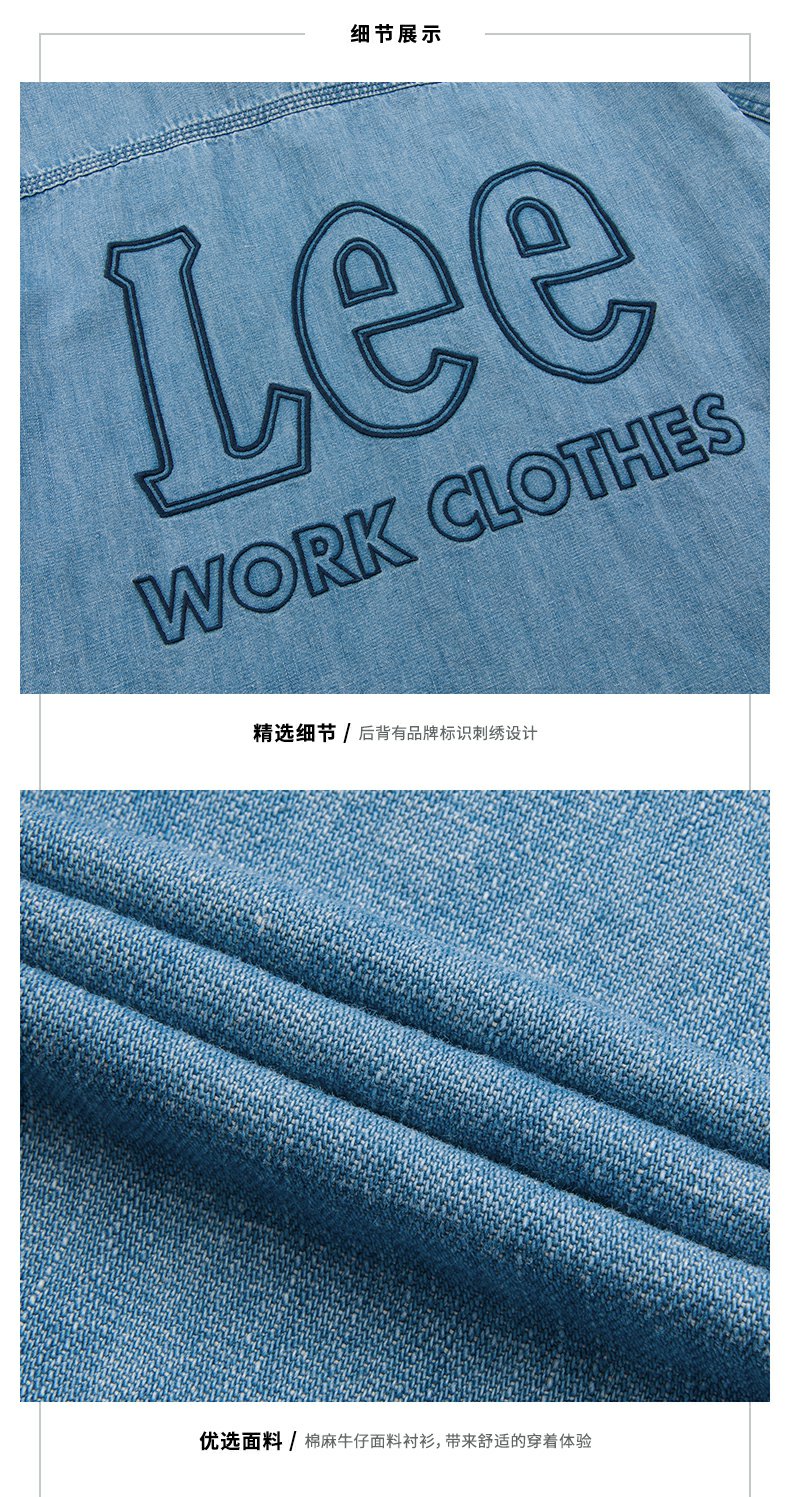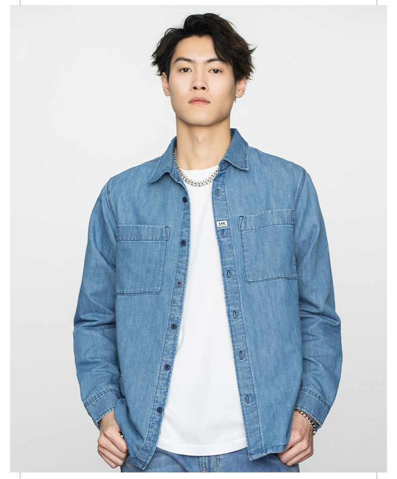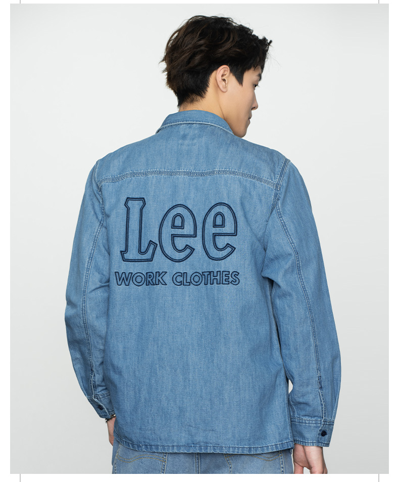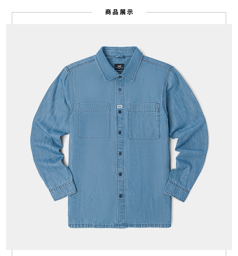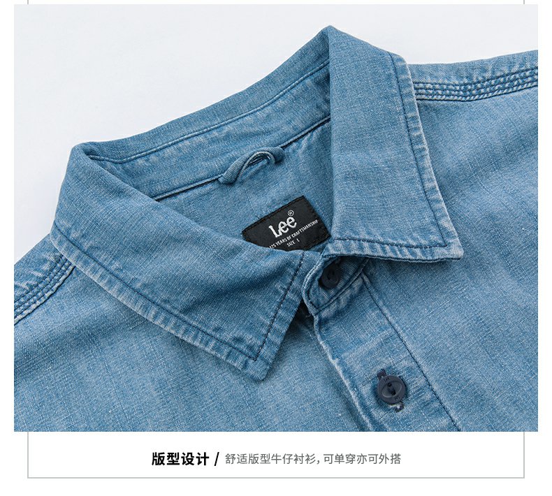 Lee商场同款22春夏新品舒适浅蓝男长袖牛仔衬衫LMT001591100-498