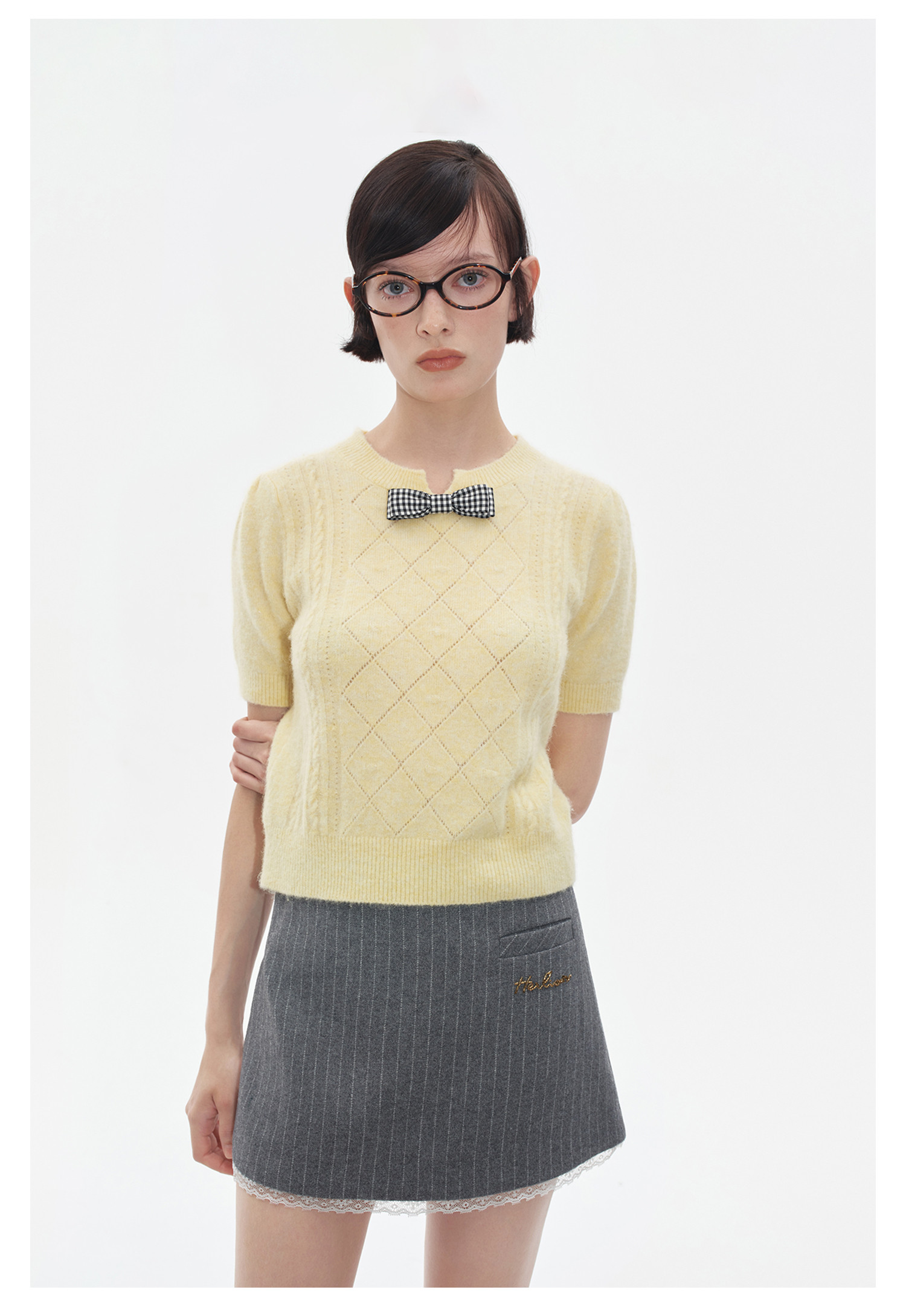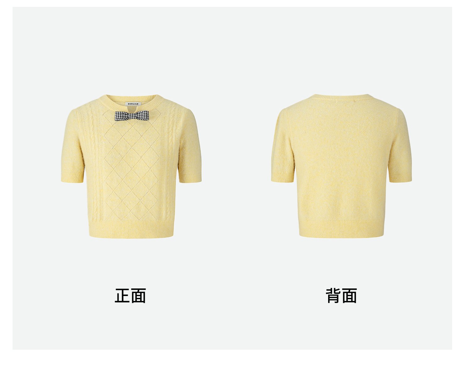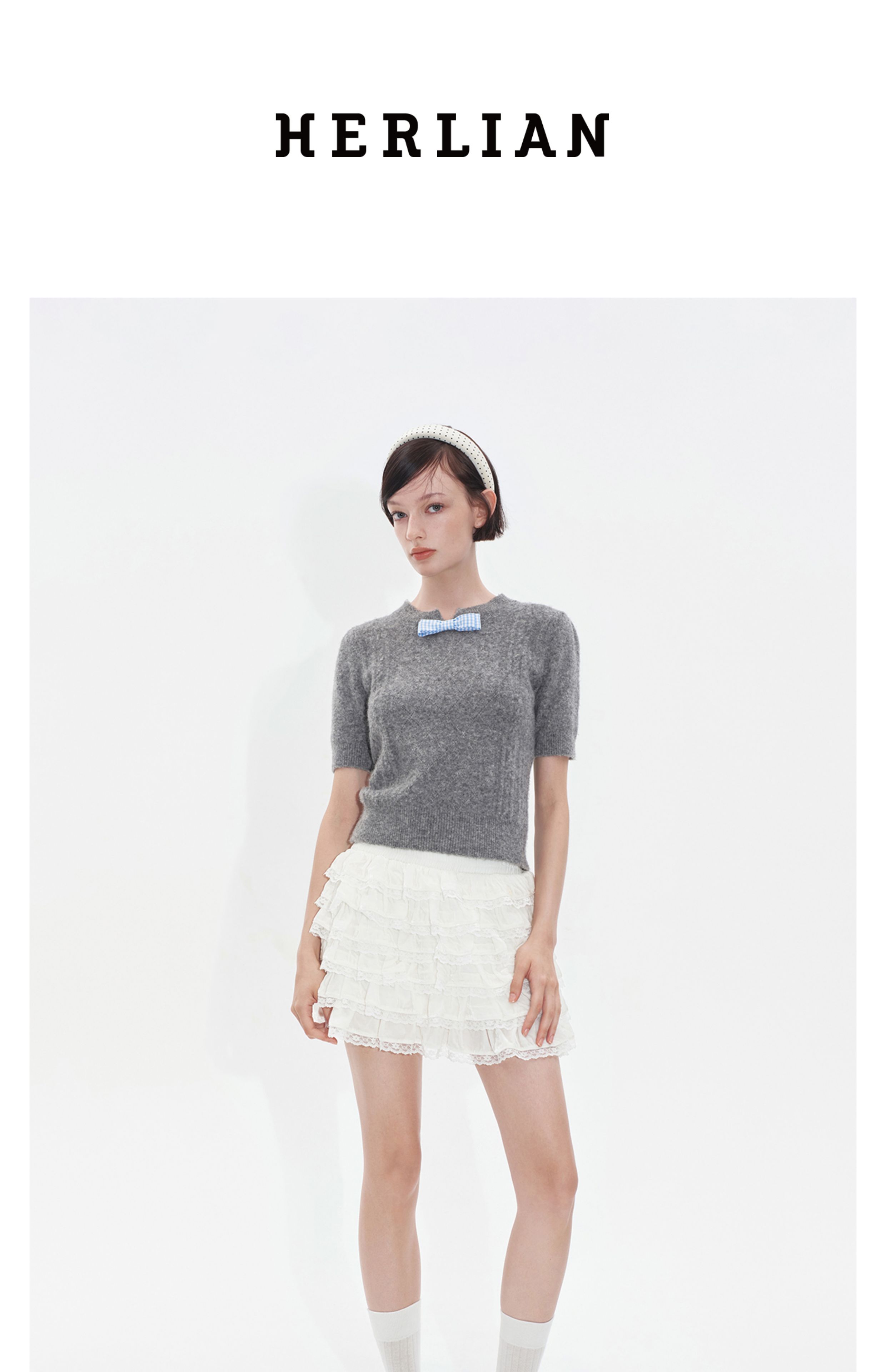 Herlian2025年秋季新品女士可拆卸蝴蝶结装饰针织短袖