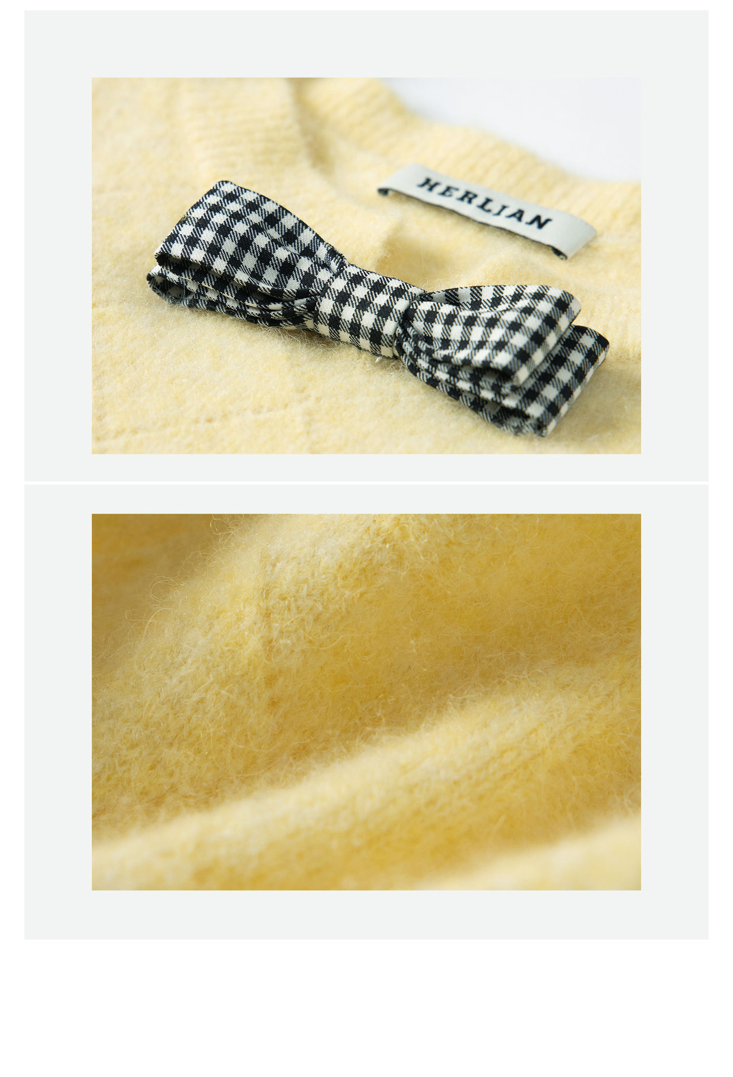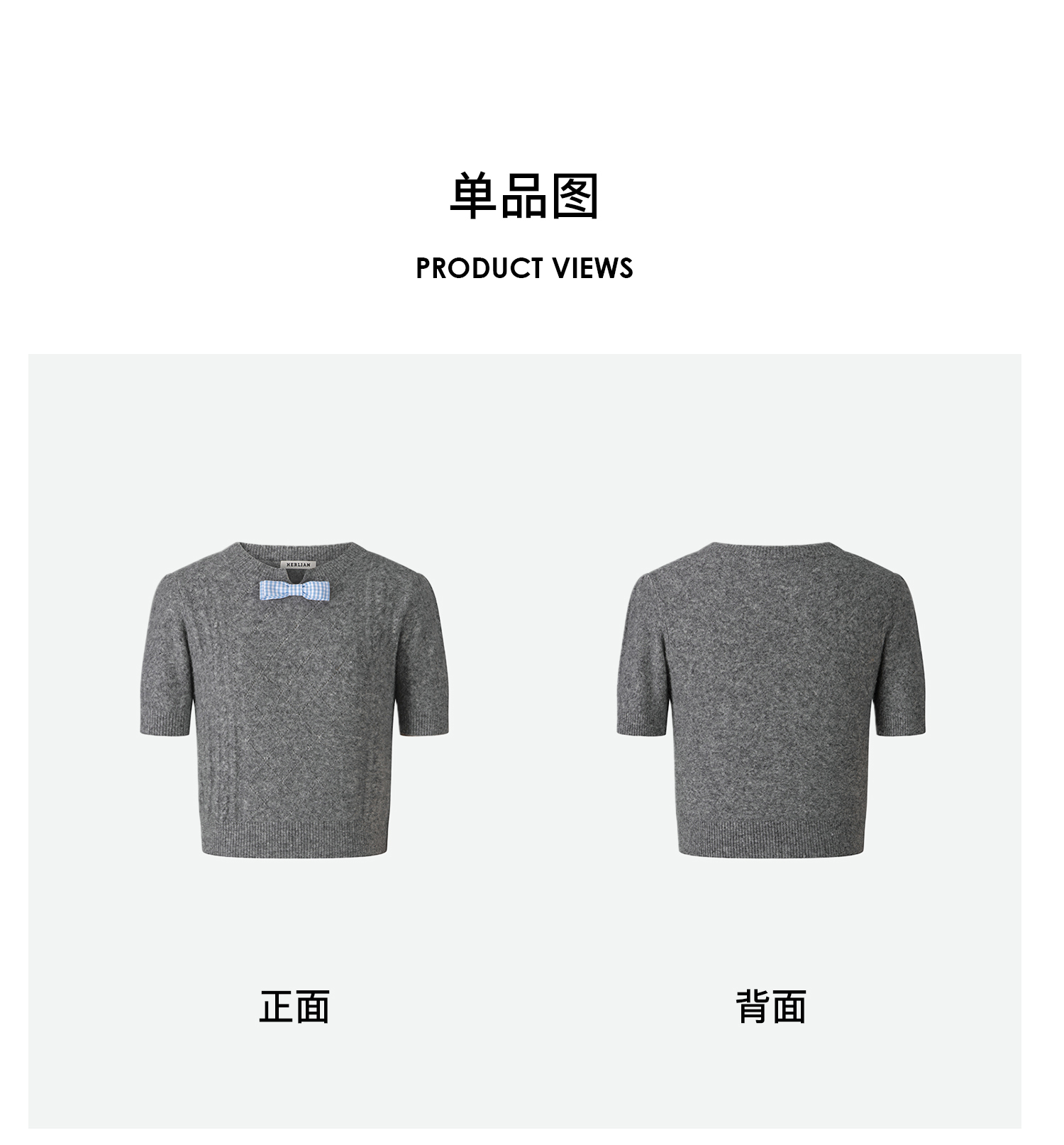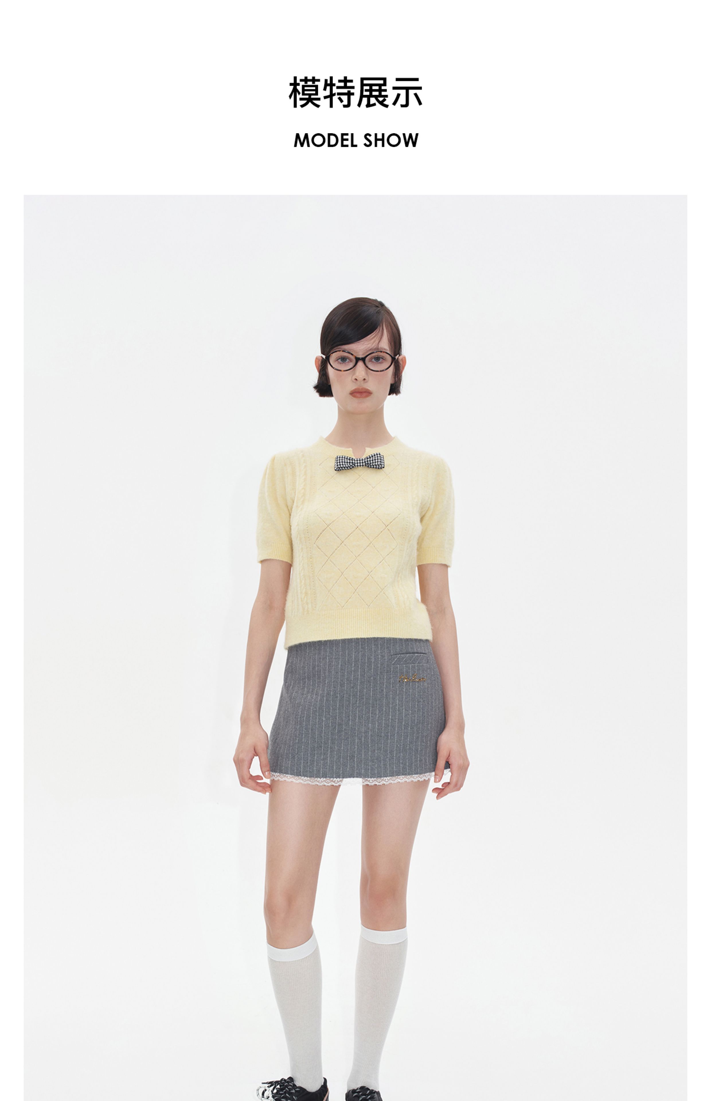 Herlian2025年秋季新品女士可拆卸蝴蝶结装饰针织短袖