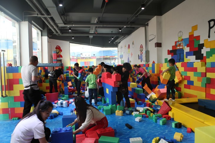 积木大家都见过砖头块大的积木应该很多人都没见过这里就有哦随便搭一座房子就可以在里面睡大觉的那种,你看!