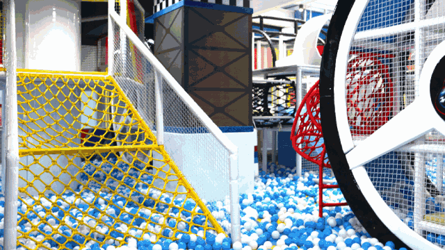 馆内除海洋球外还有攀爬拓展设备、沙袋、滑滑梯、FI赛车原型等设备,让小朋友在安全的环境周愉快的玩耍。
