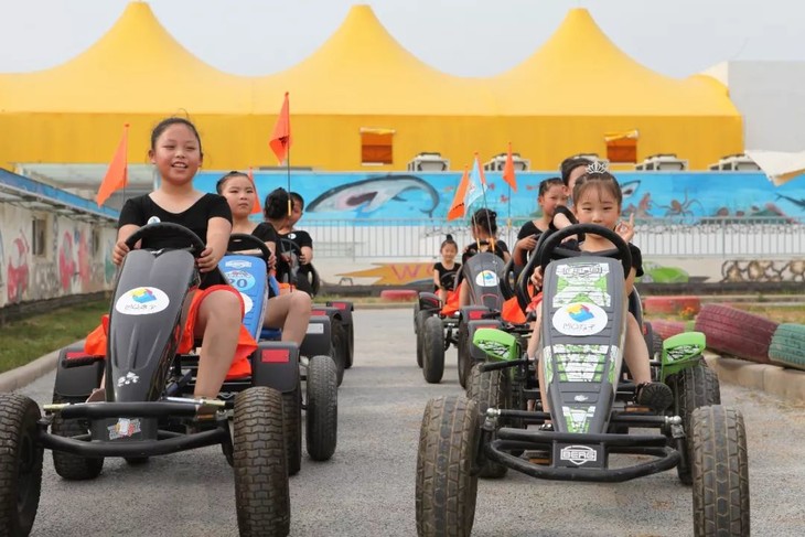 除赛车外,赛道内设有交通标示、加油站、维修中心、酒店、银行等虚拟设施,让小朋友在骑赛车锻炼身体的同时体会到城市生活的乐趣。