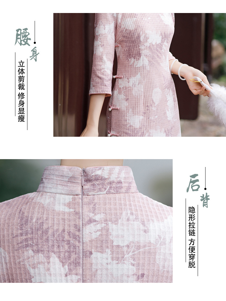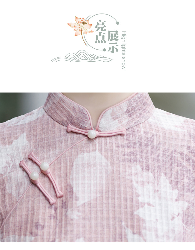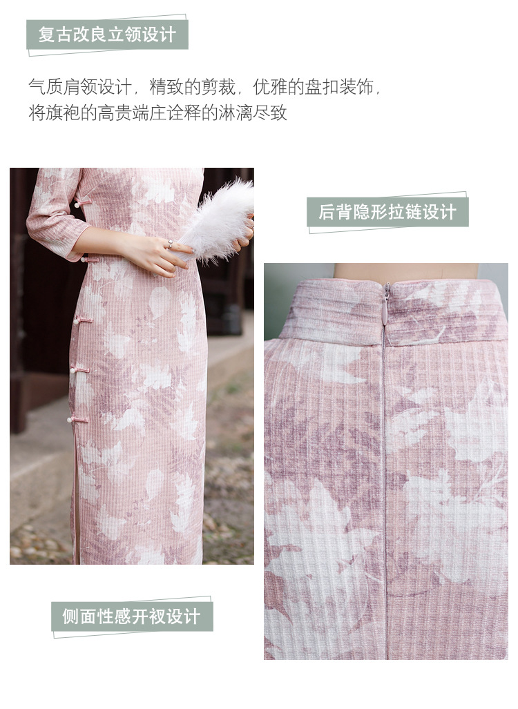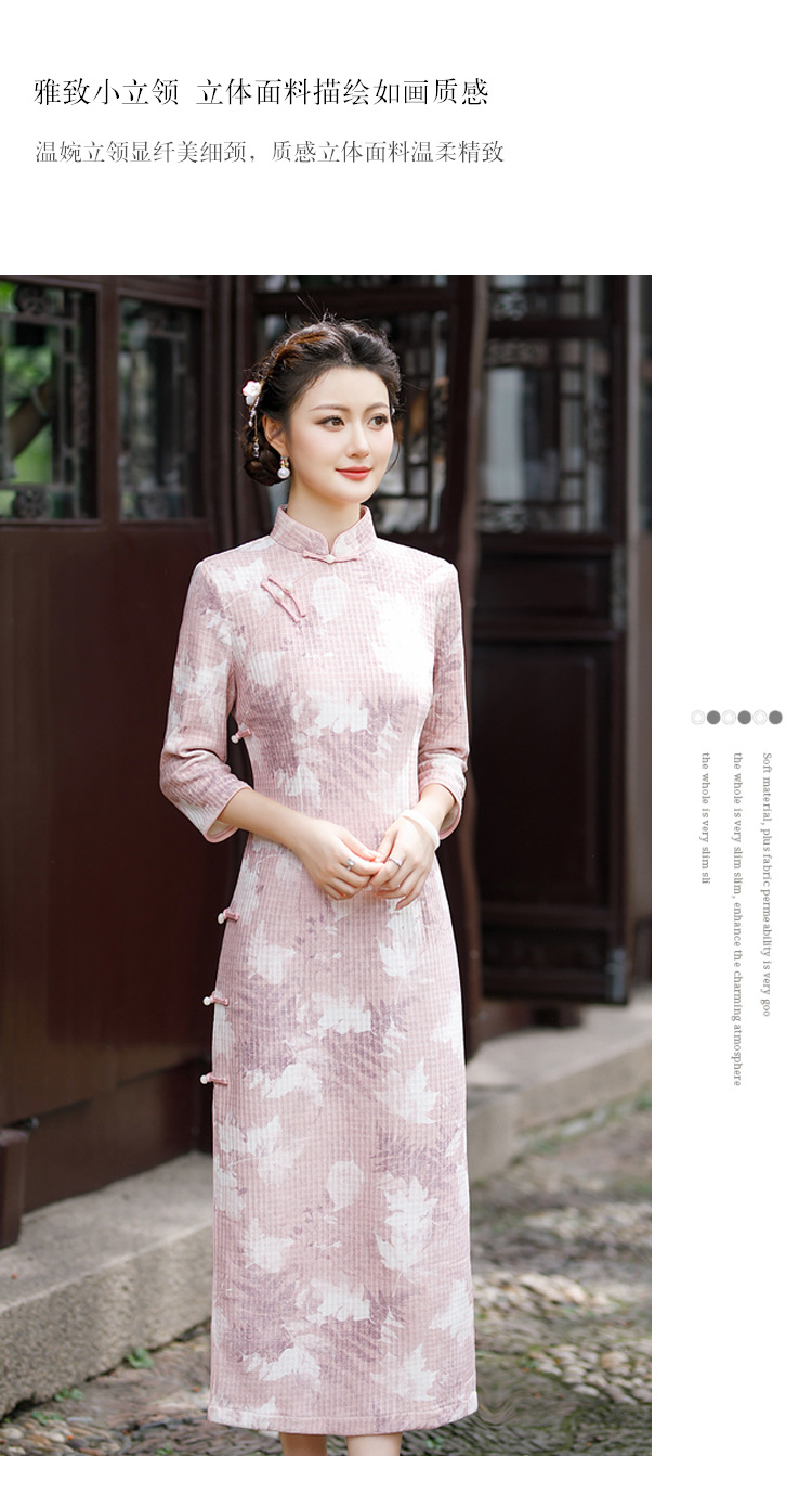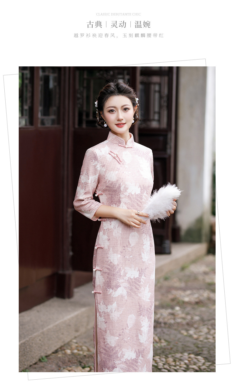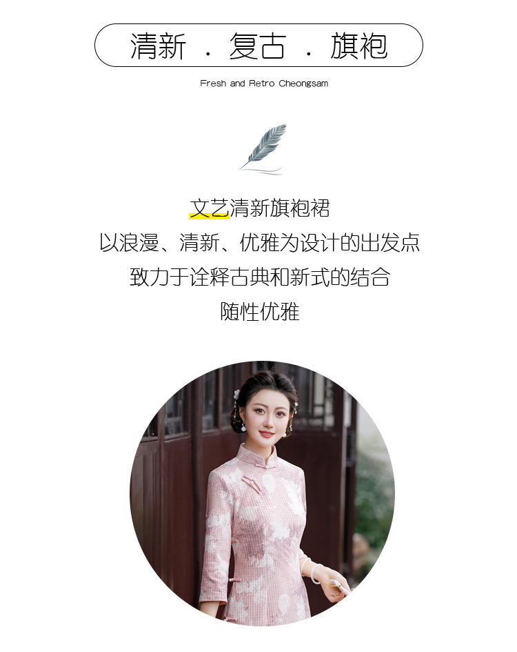 复古大码中式亚麻旗袍,五分中袖文艺棉麻民族风开叉中长款显瘦旗袍GT-0860