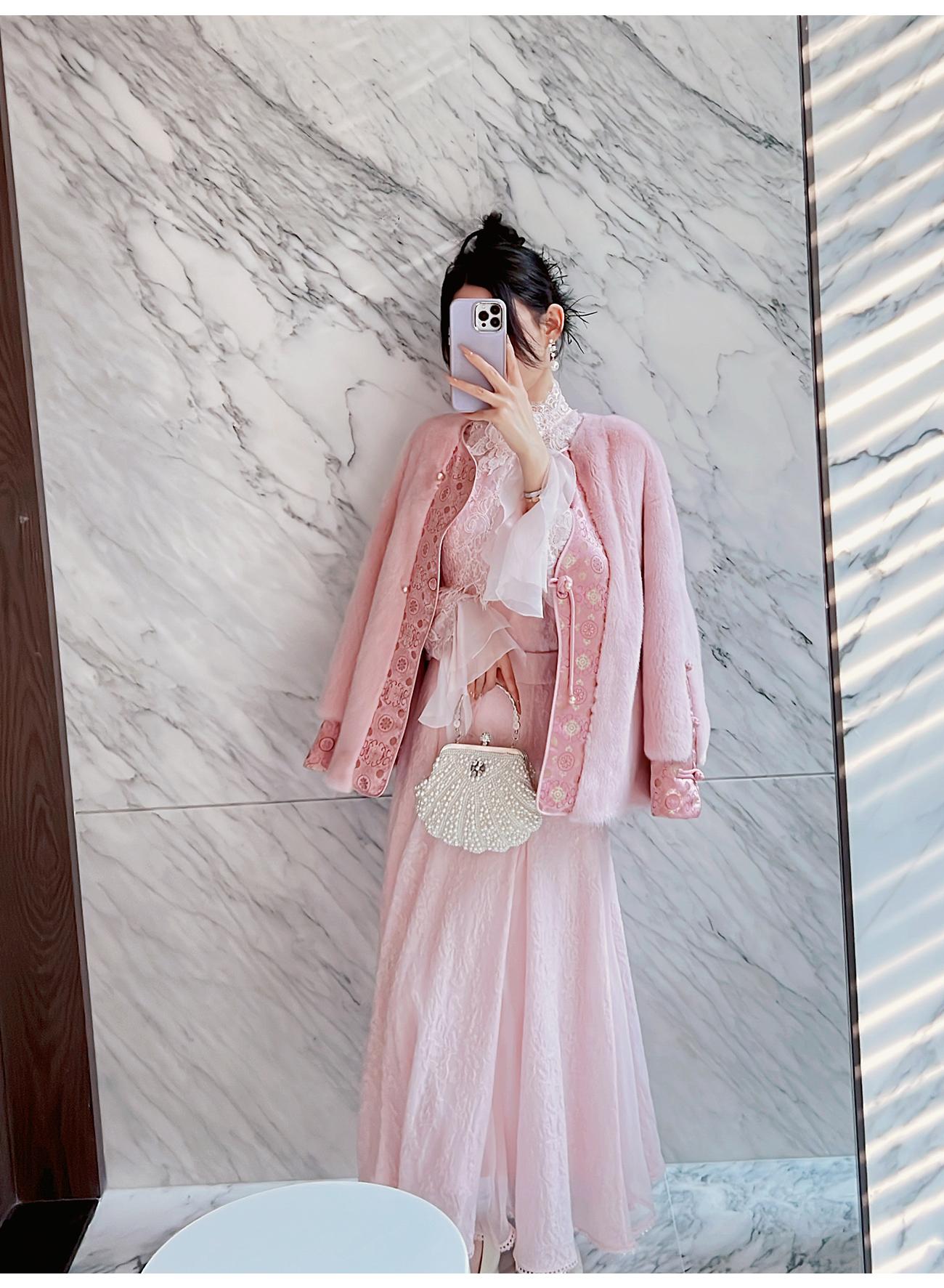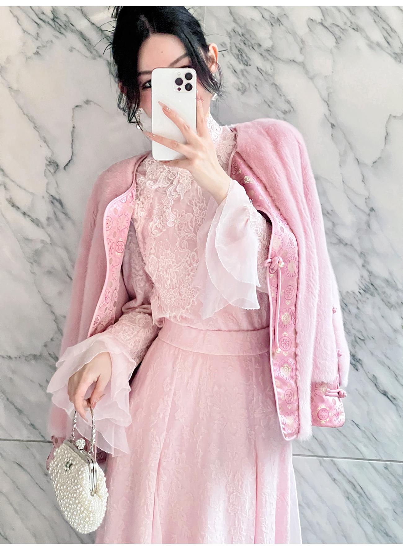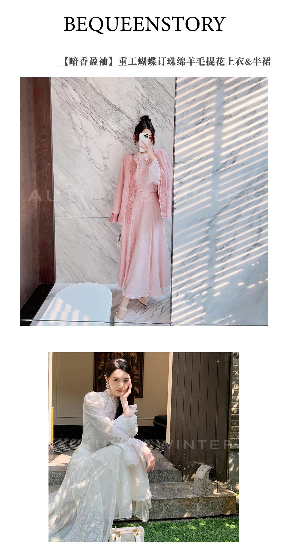 【孤品样衣,不退不换】 【暗香盈袖】新中式真丝顺纡双层喇叭袖羊毛提花套装