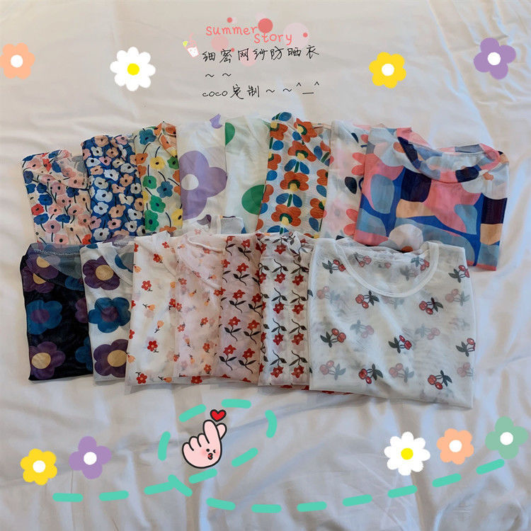 【冰丝网纱防晒打底衫女】2025夏季 长袖泫雅风同款t恤 内搭上衣潮