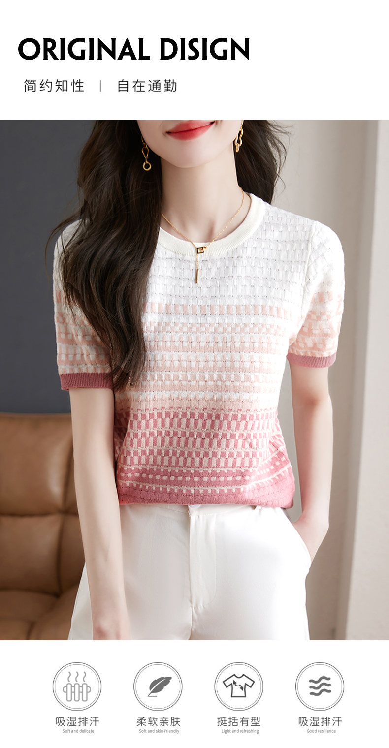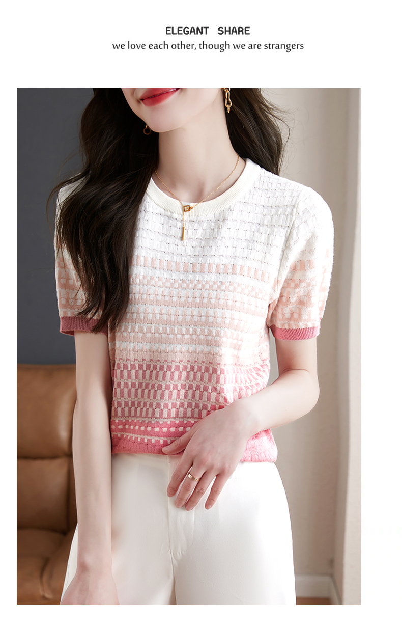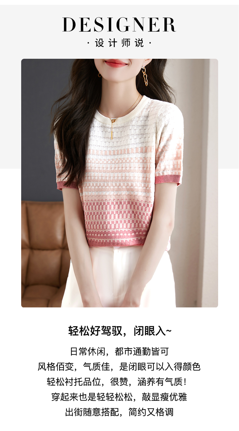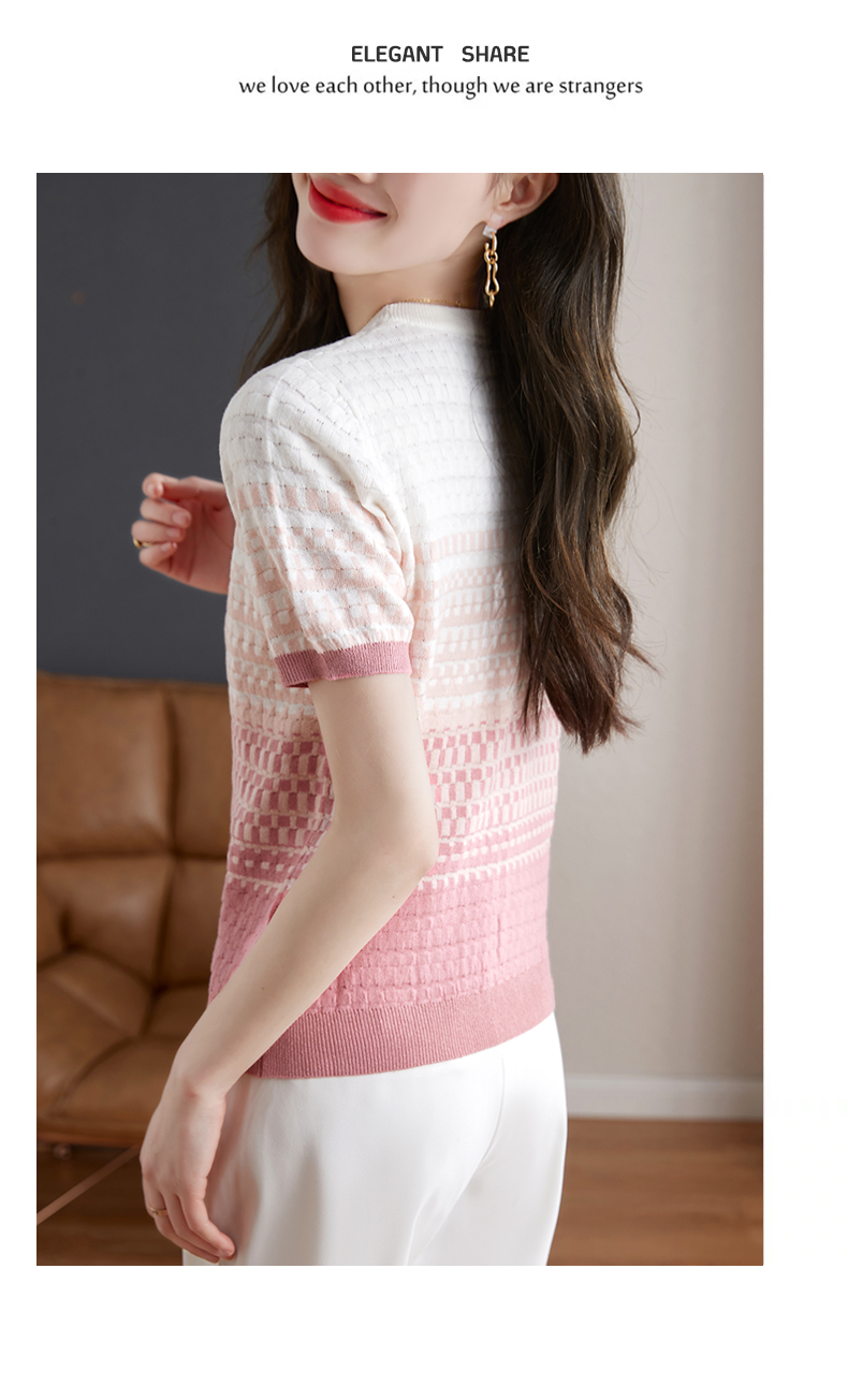镂空显瘦短袖条纹针织衫,夏季新款短款百搭上衣薄半袖小衫CC-MLX367