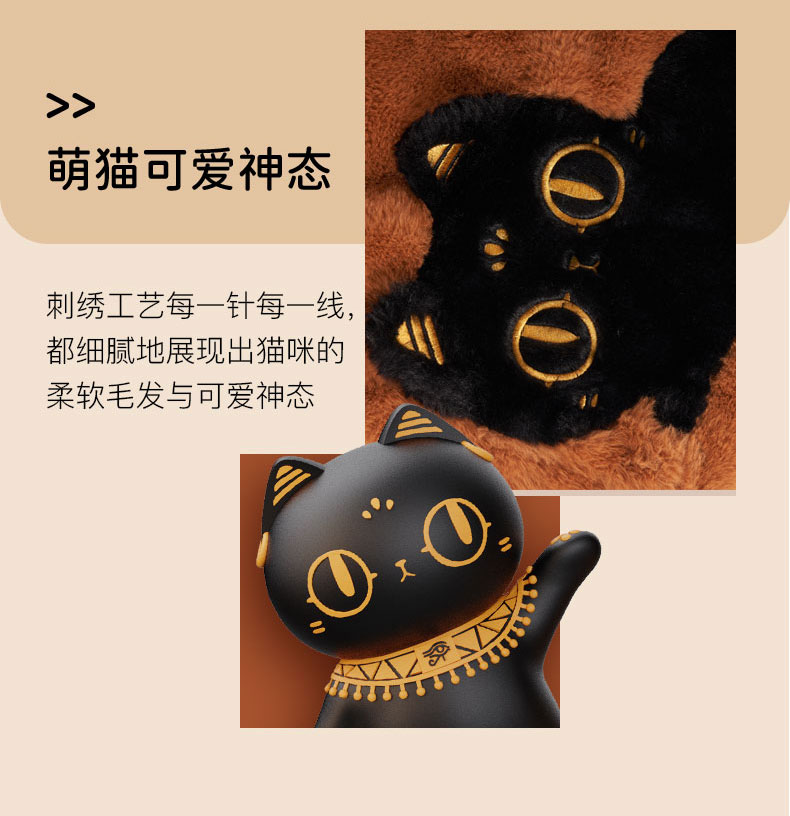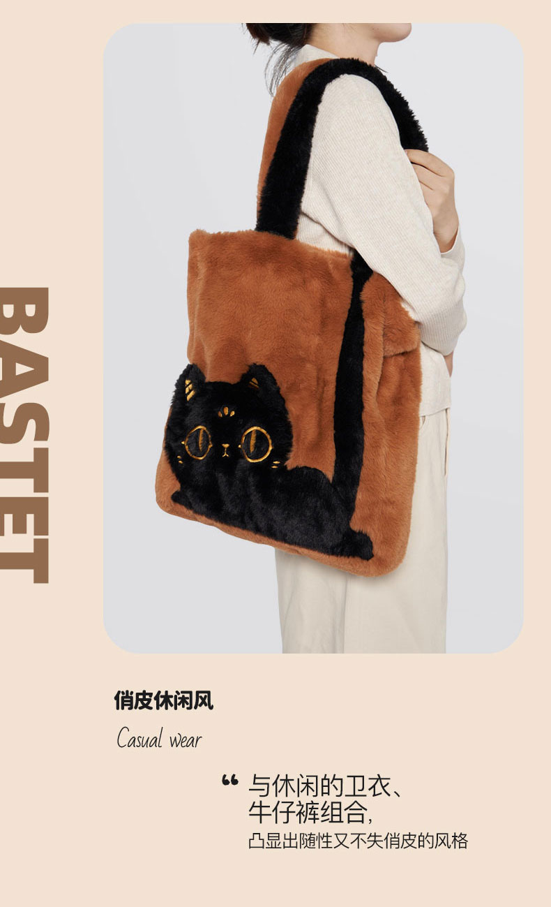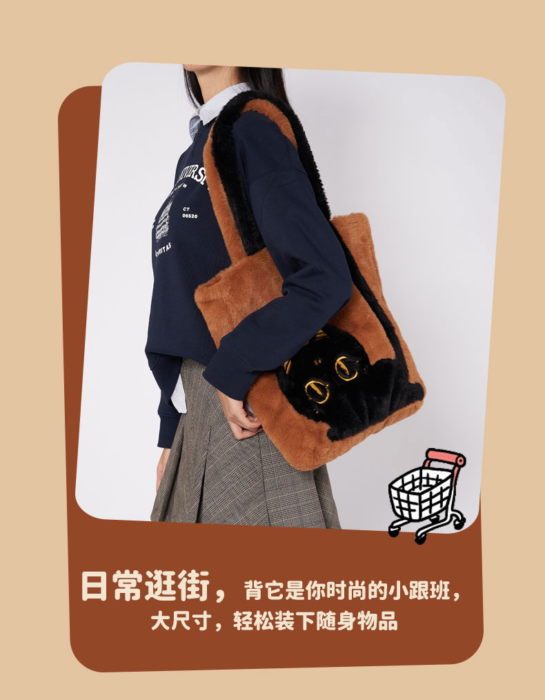 大英博物馆 巴斯特系列 毛绒趴趴猫撞色单肩包 咖色