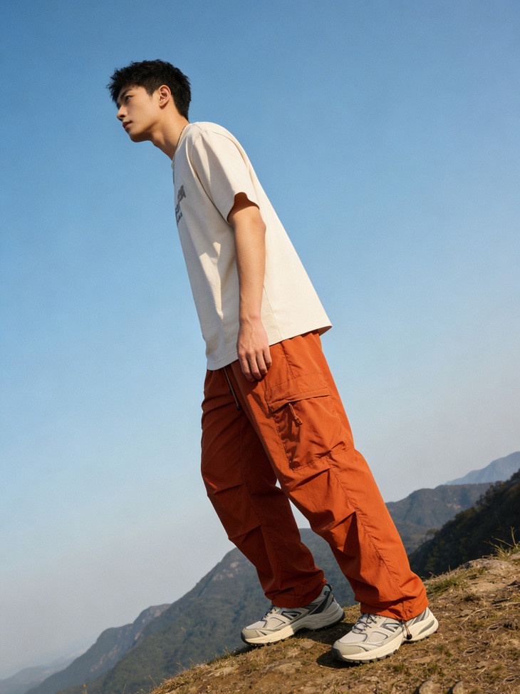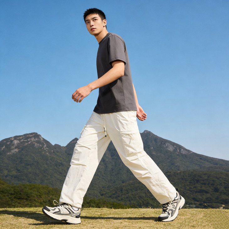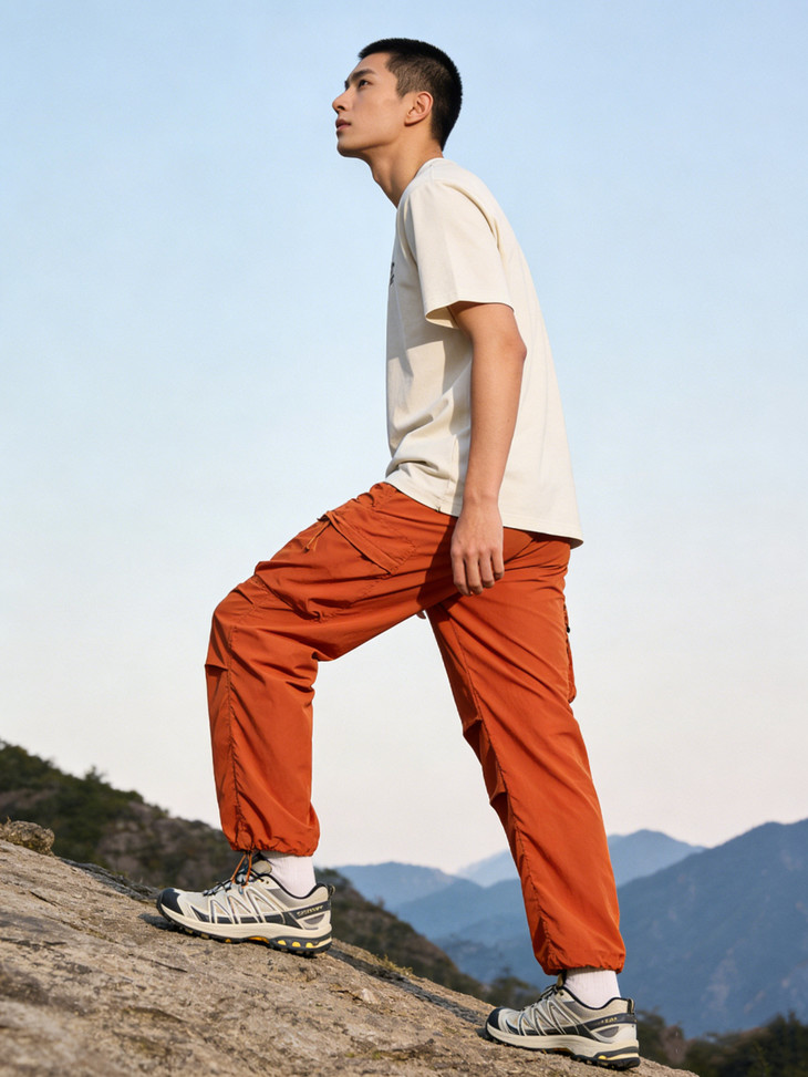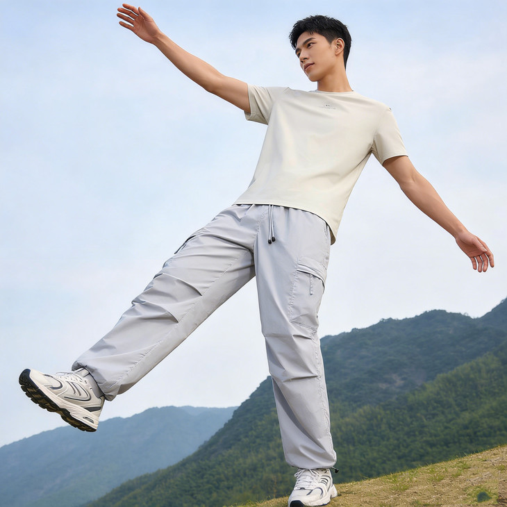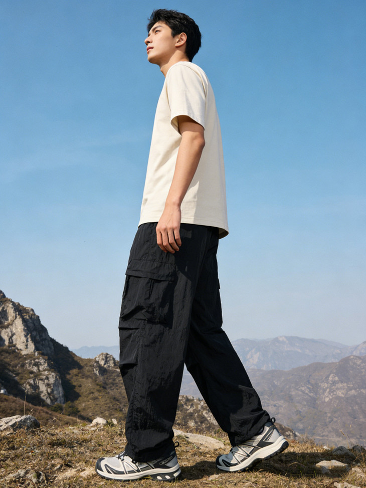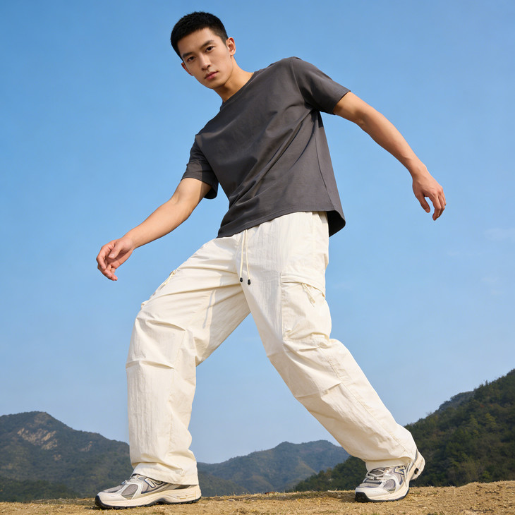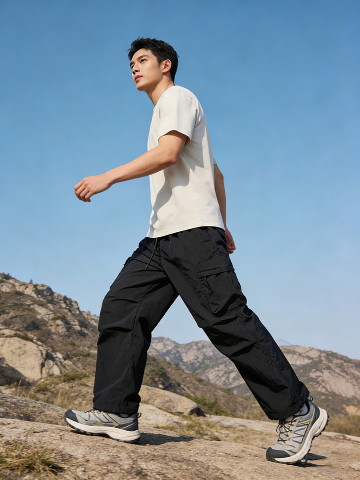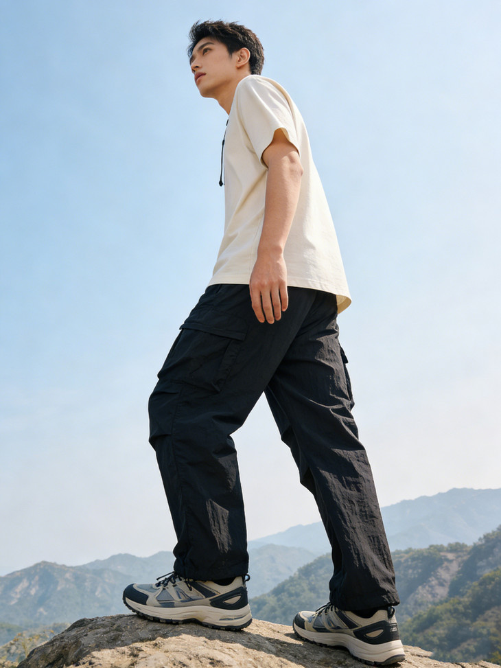裤脚抽绳收口可自由调节裤脚宽度,一裤两穿(直筒 / 束脚)