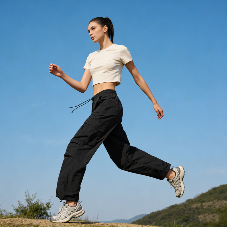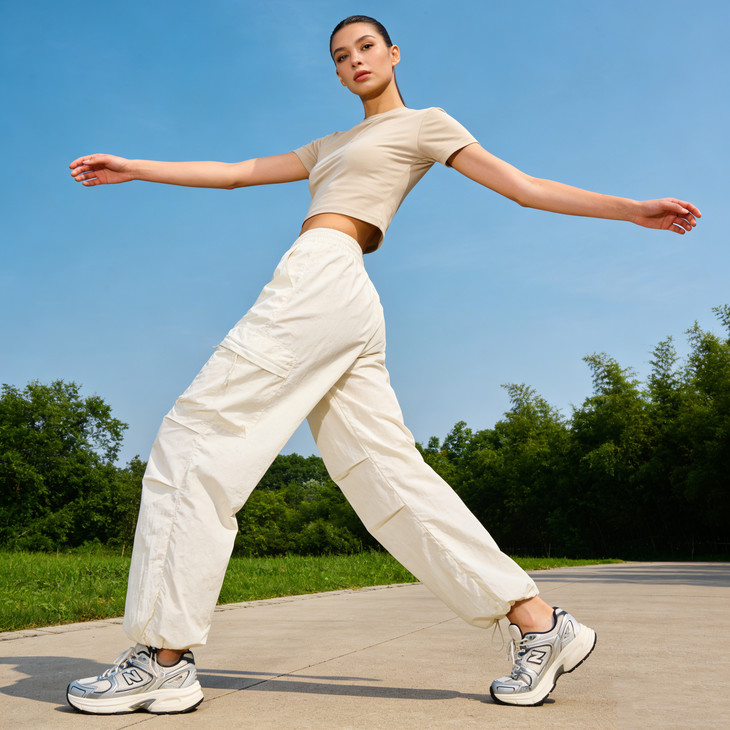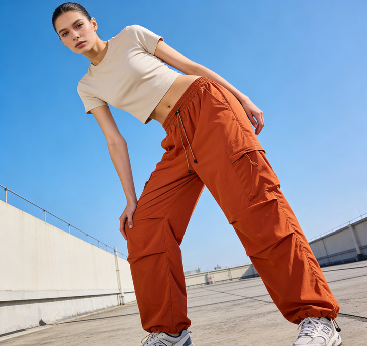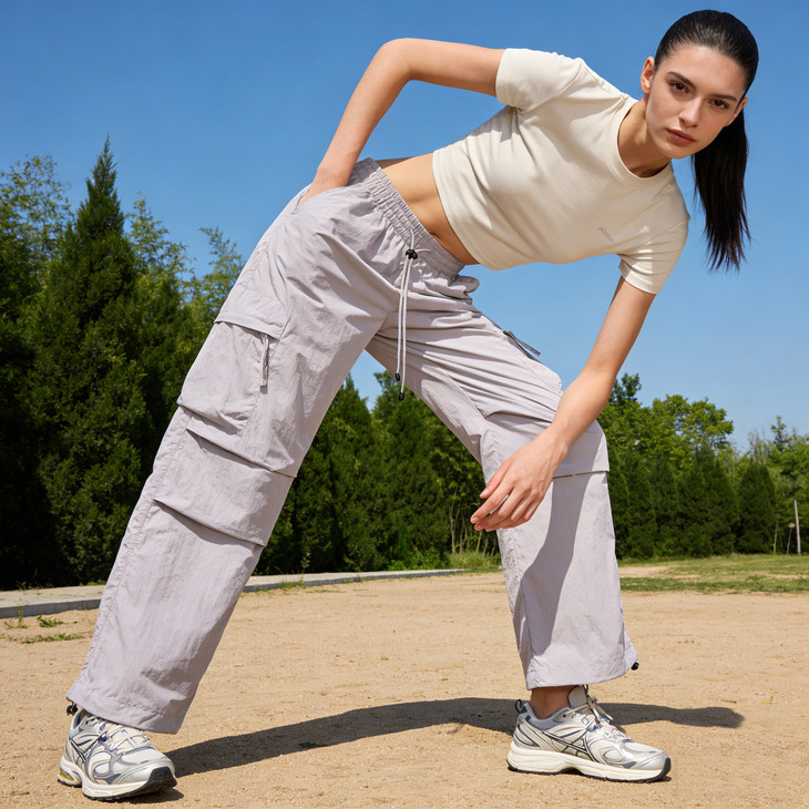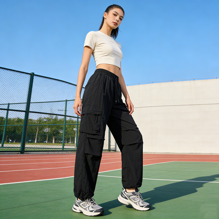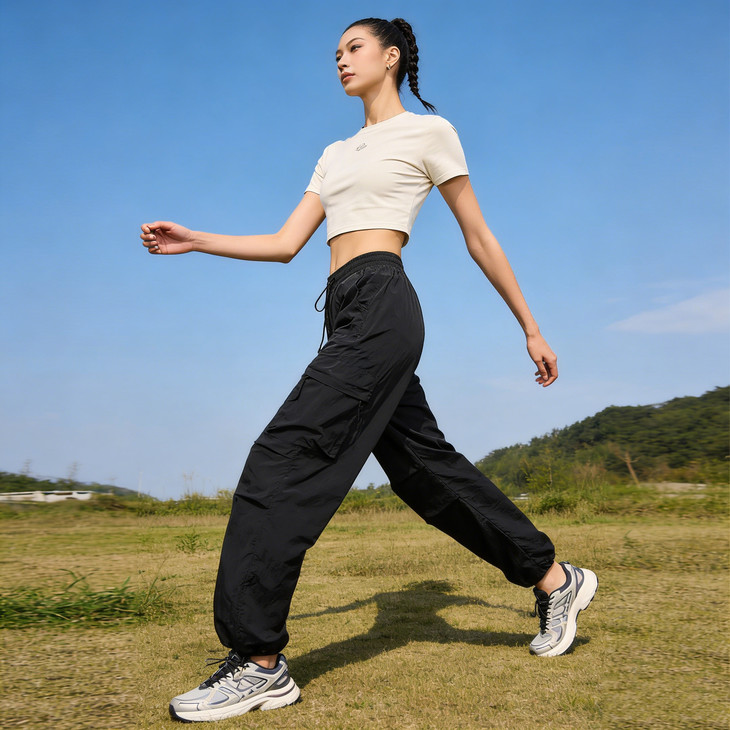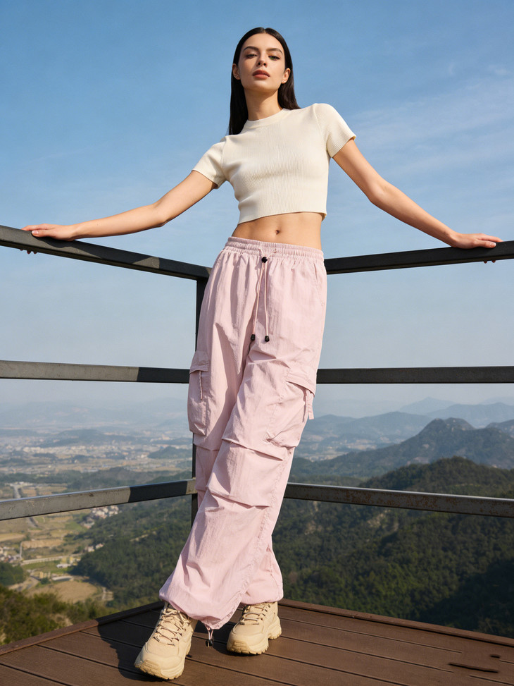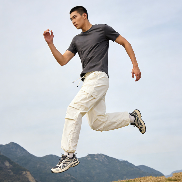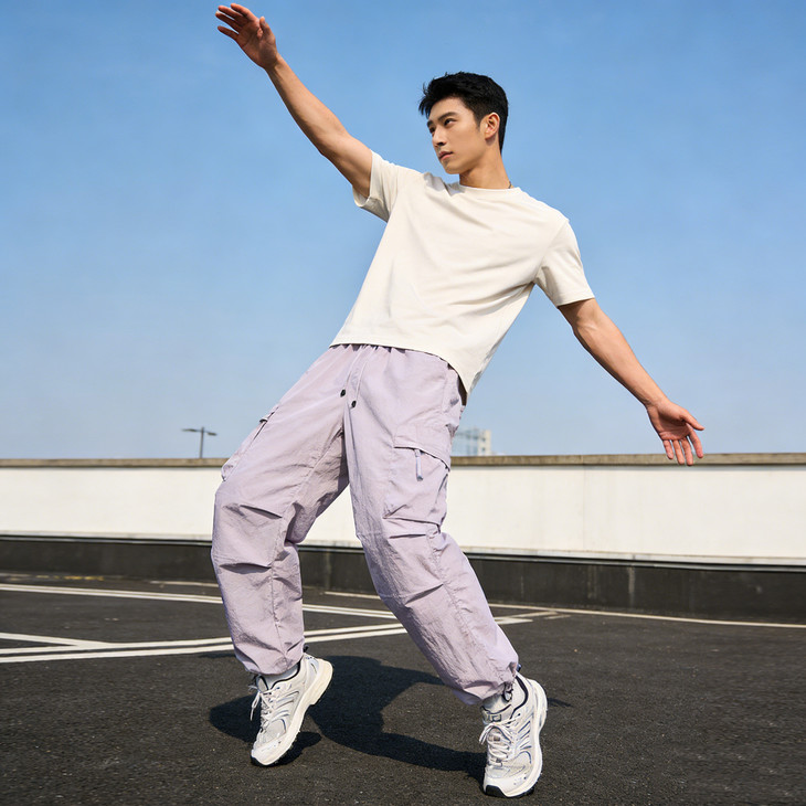 裤脚抽绳收口可自由调节裤脚宽度,一裤两穿(直筒 / 束脚)