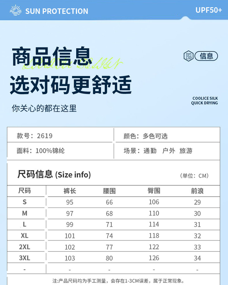 它手感丝滑,摸起来就很高档 面料薄如蝉翼,轻若无物 穿在身上几乎感觉不到它的重量 透气性一流,夏天 30 多度的高温天气 让双腿时刻享受清风拂面的凉爽,清透不闷热 而且它还有天然的防晒属性,有效阻挡紫外线 保护肌肤不被晒伤,夏日出行的绝佳伴侣 这次工厂拿出外贸剩余面料给我们做的货 具体多少库存还不知道,要买抓紧就对了