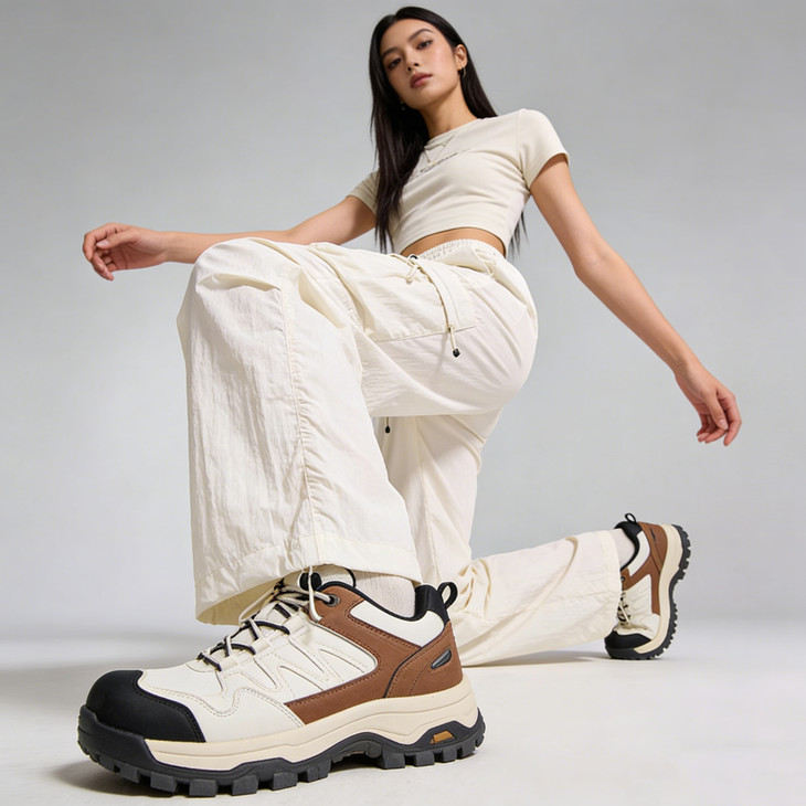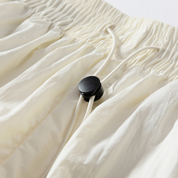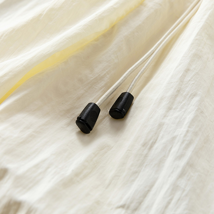 抽绳设计:黑色圆绳 + 双孔绳扣,可调节松紧,绳尾有黑色小坠珠,增加精致感。