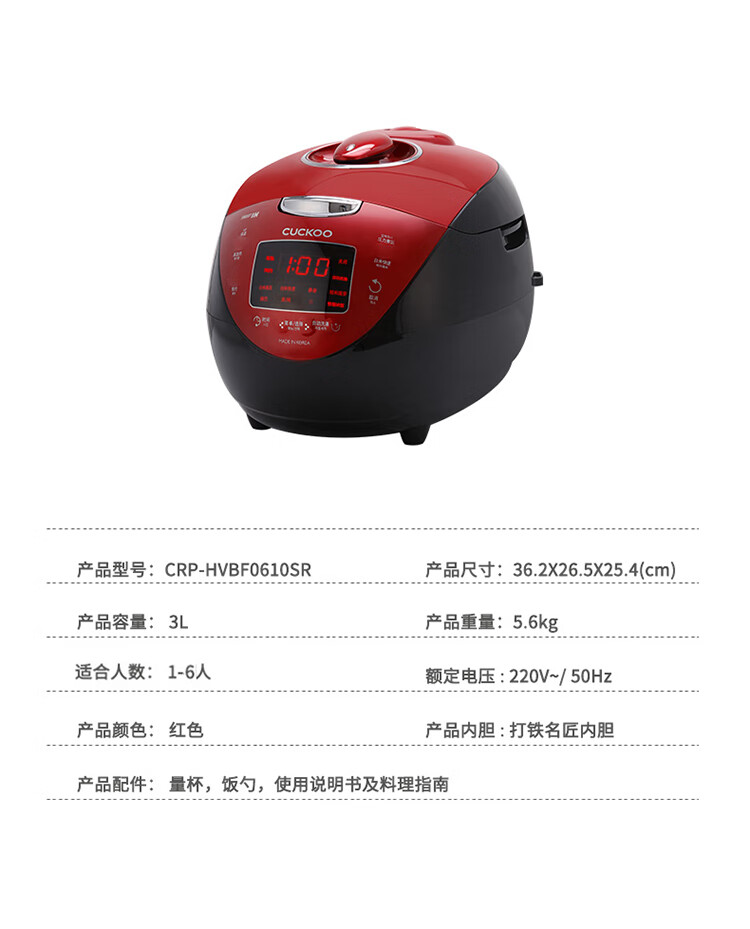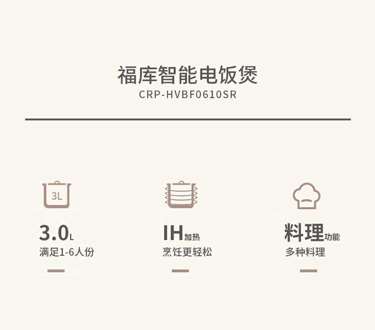 福库(CUCKOO)3升小型家用电饭锅 多功能IH压力电饭煲1.8倍高压力柴火饭打铁名匠内胆CRP-HVBF0610S