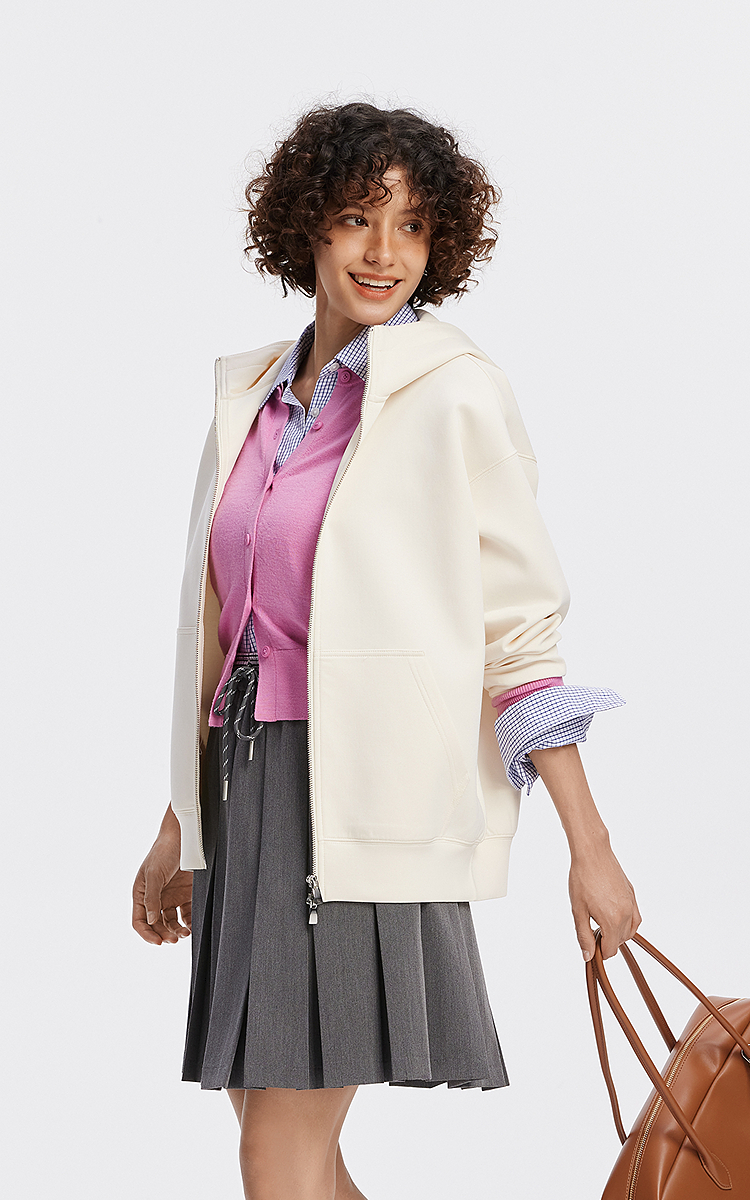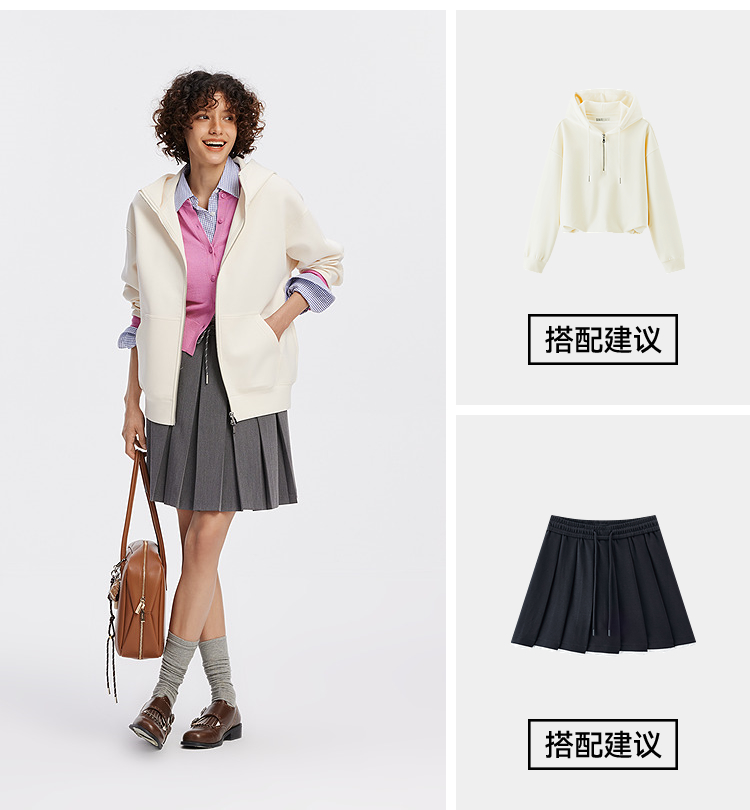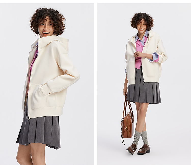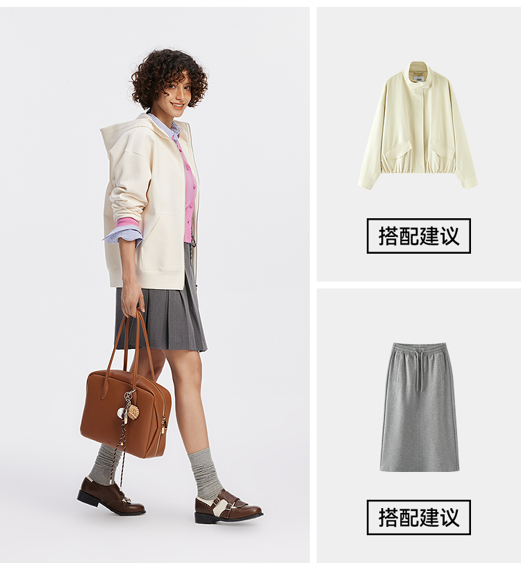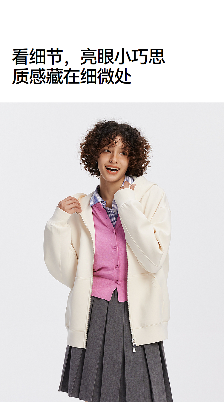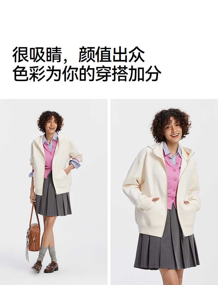 森柔棉|商场同款森马外套女纯色宽松慵懒2025秋新款连帽夹克休闲