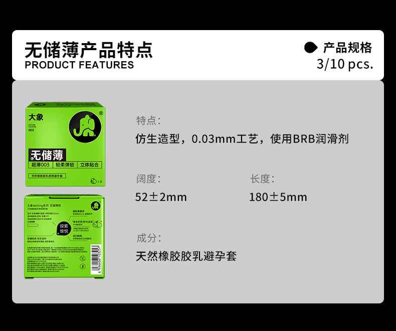 FX 大象nothing系列无储避孕套超薄0.03安全套