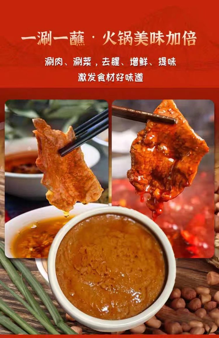 ✨还送蘸料,随机送1袋✨▶可蘸可拌,美味常伴,解腻去腥,不油不腻▶全家口味都能满足!挤一挤就能蘸,涮肉涮菜裹满酱,直接把火锅香度翻三倍
