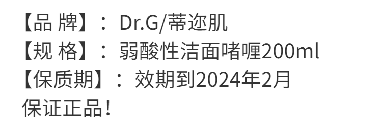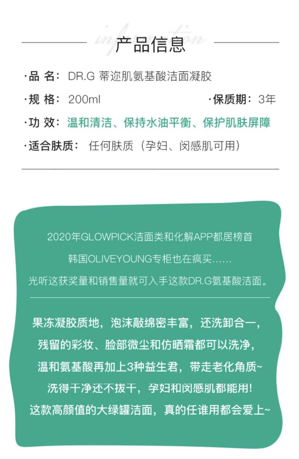 【爆款超低价预售 急单慎拍】韩国Dr.G/Drg蒂迩肌氨基酸洁面弱酸性洗面奶凝胶温和敏感肌200g