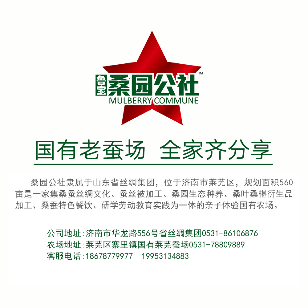 桑园公社,隶属于山东省丝绸集团。莱芜基地位于山东省济南市莱芜区寨里镇,规划面积600亩,是一家集原生态桑园立体种养殖、蚕丝被加工、桑蚕衍生品加工、桑蚕特色餐饮、研学体验等一体的生态循环农业示范园。