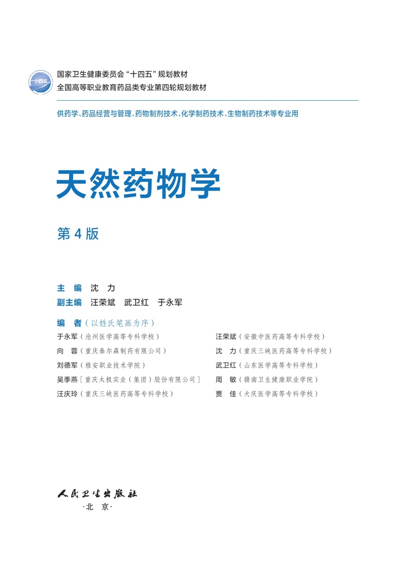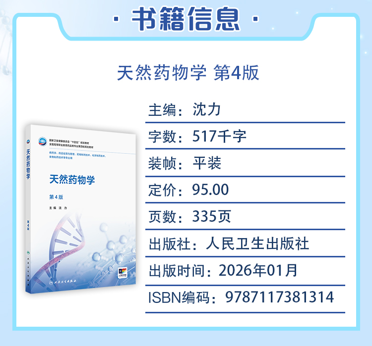 天然药物学 第4四版 十四五规划教材 全国高等职业教育药品类专业第四轮规划教材 沈力 供药学生物制药技术等专业用人民卫生出版社