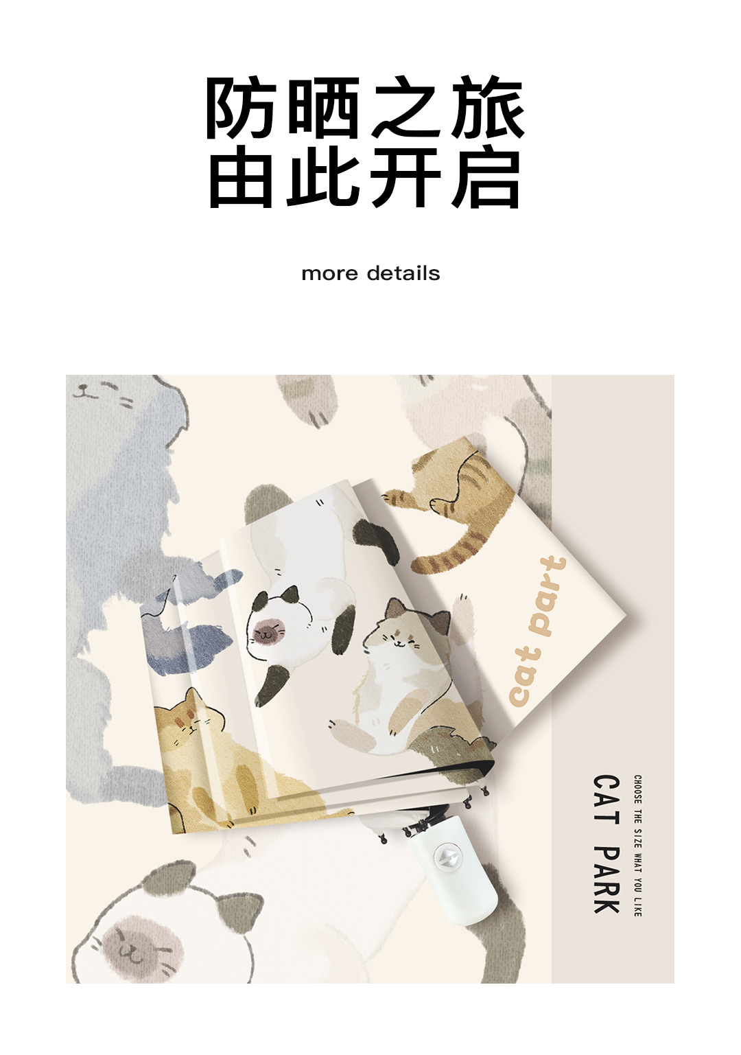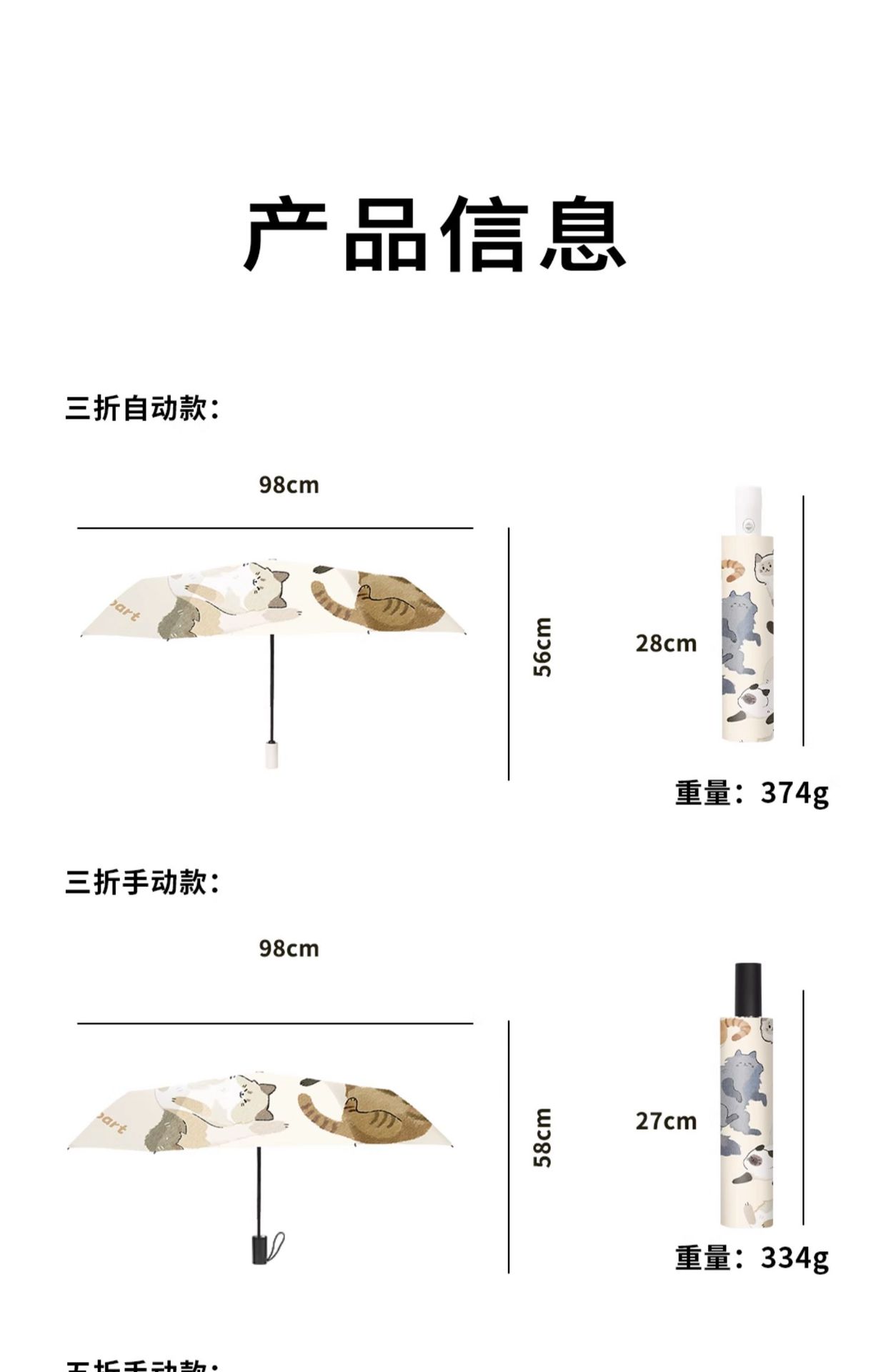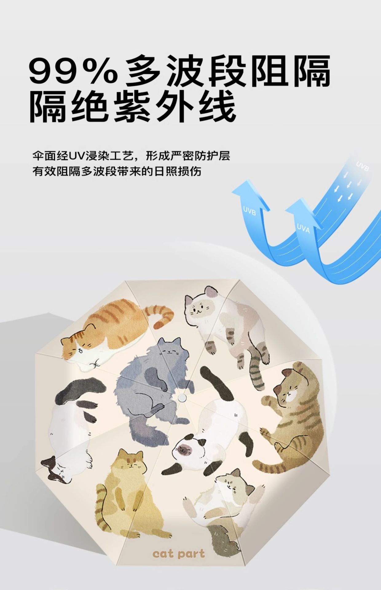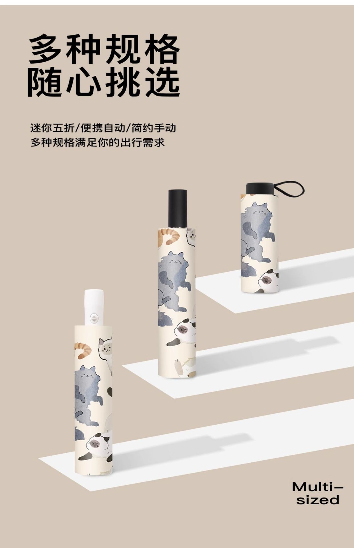 【UPF50+不惧暴晒!可爱卡通猫咪晴雨伞】“0透光,持久防嗮”科技黑胶涂层,轻盈防嗮,可爱卡通便携黑胶太阳伞,小众防晒防紫外线遮阳伞L
