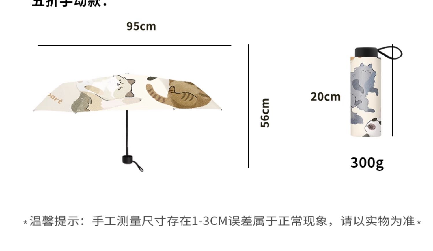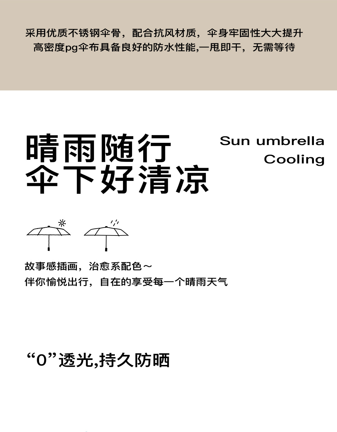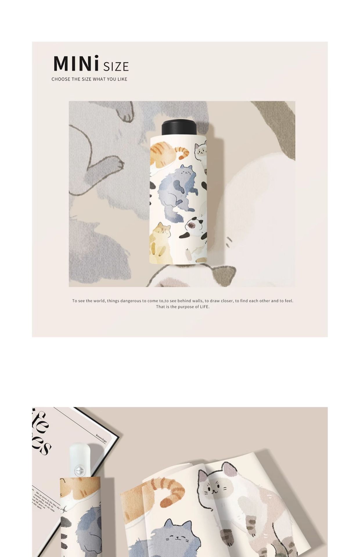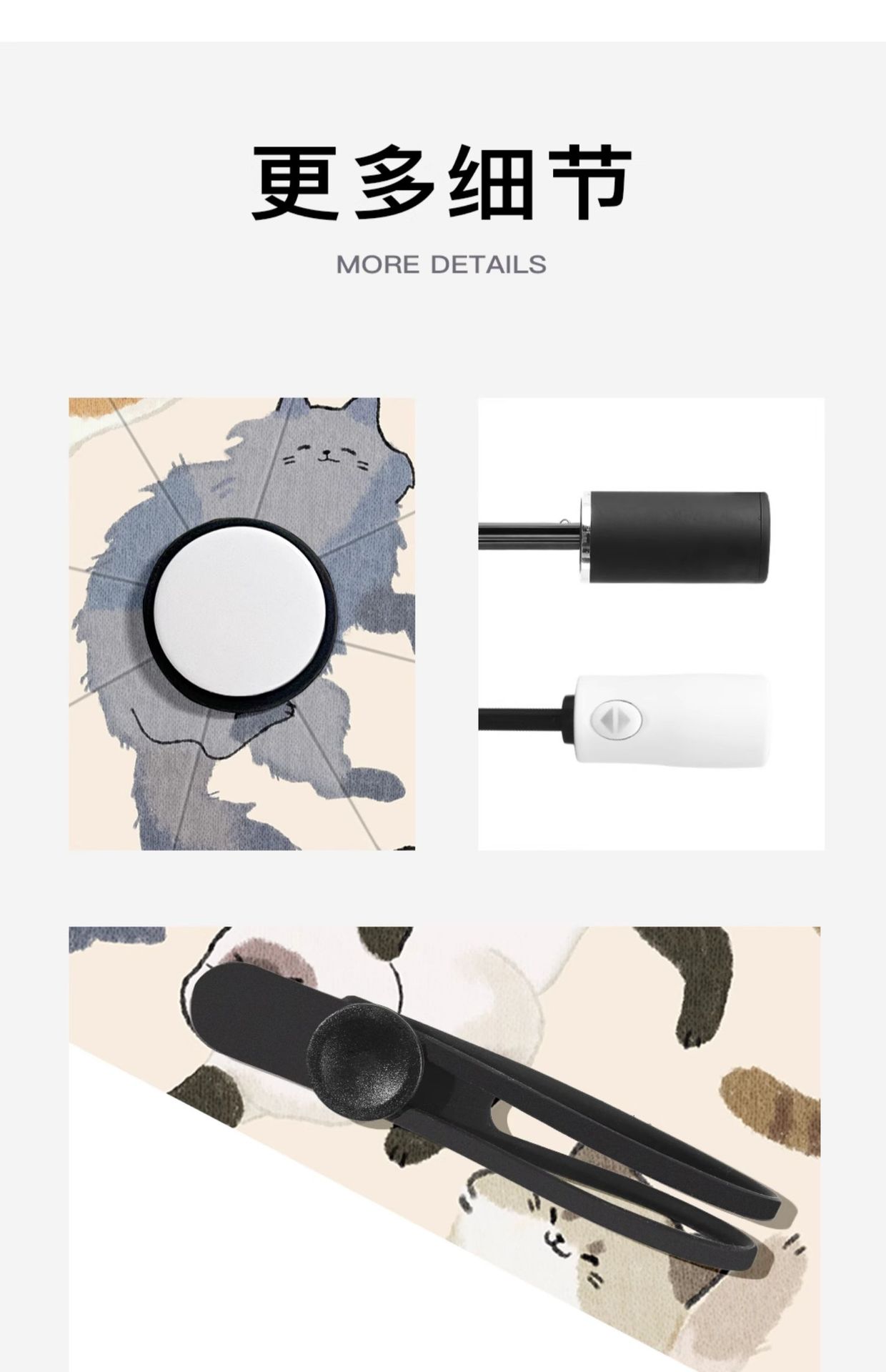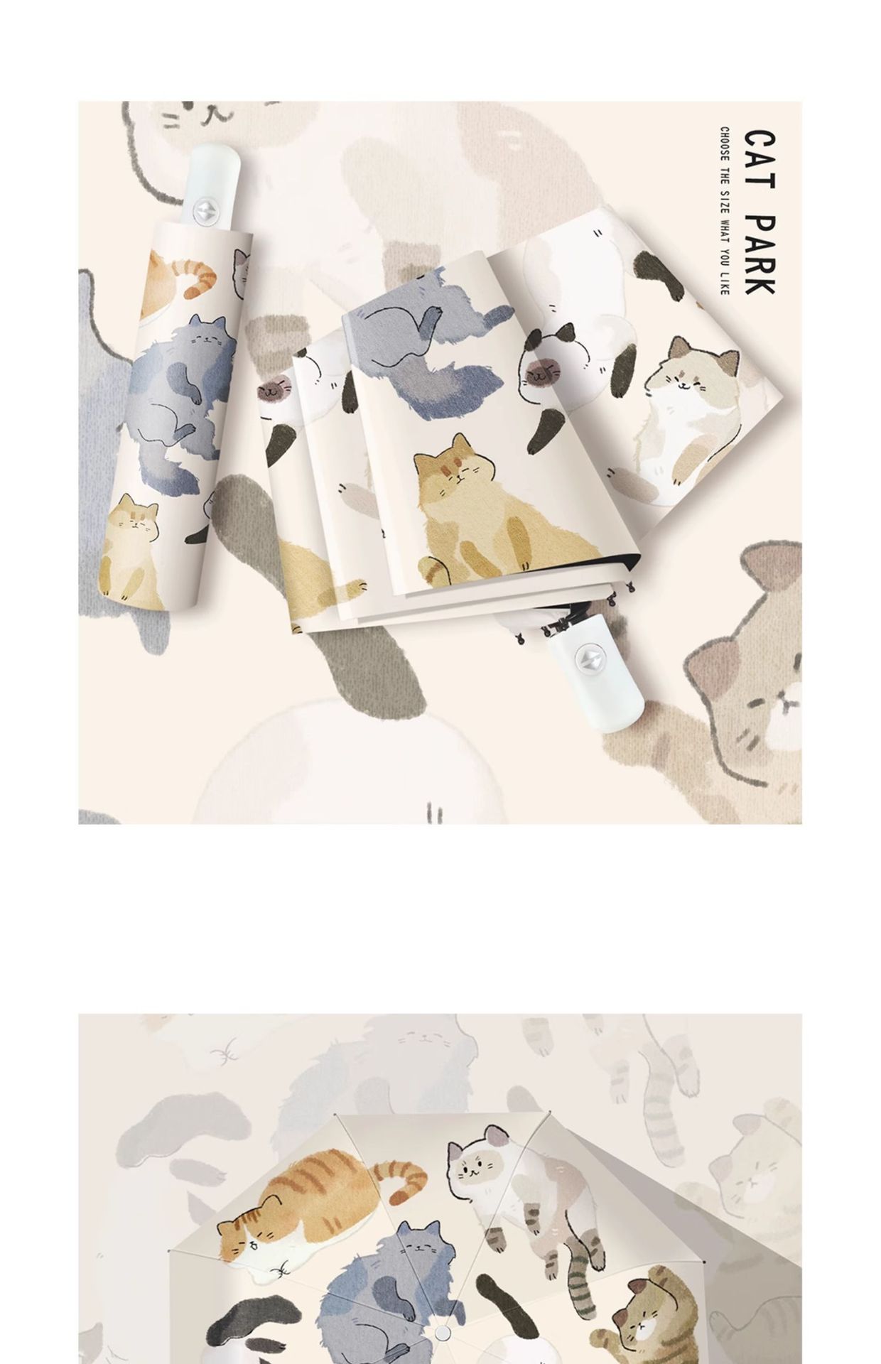 【UPF50+不惧暴晒!可爱卡通猫咪晴雨伞】“0透光,持久防嗮”科技黑胶涂层,轻盈防嗮,可爱卡通便携黑胶太阳伞,小众防晒防紫外线遮阳伞L
