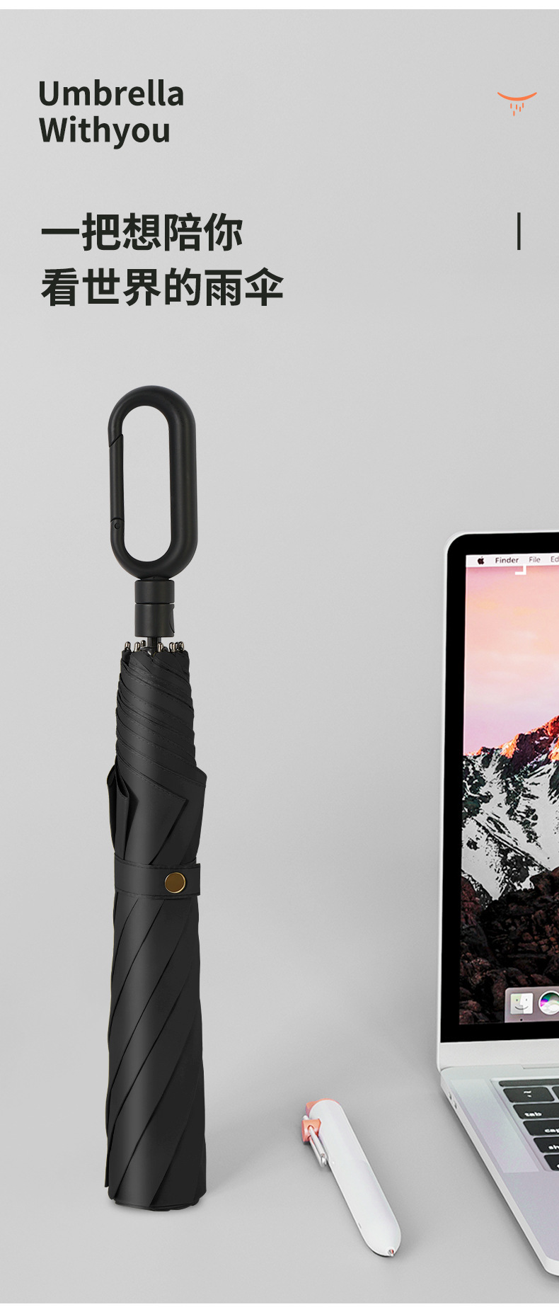 【随身携带 环扣晴雨伞】一键自动开伞 加大加密拒水伞布 轻松携带 收纳方便 合计伞骨无惧风雨 六色可选