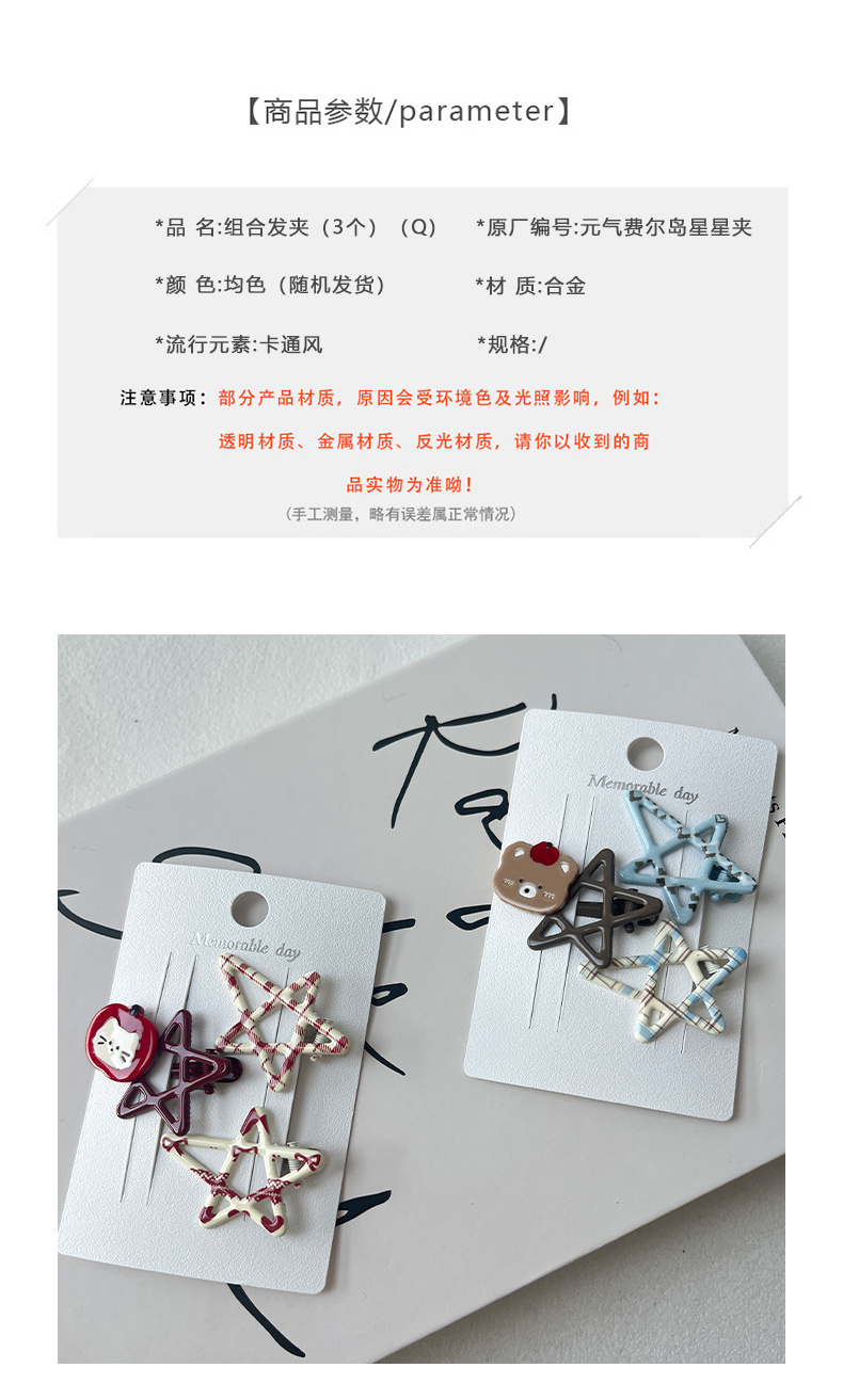 元气费尔岛卡通星星夹组合发夹(3个)-纪念日百货门店同款167446362