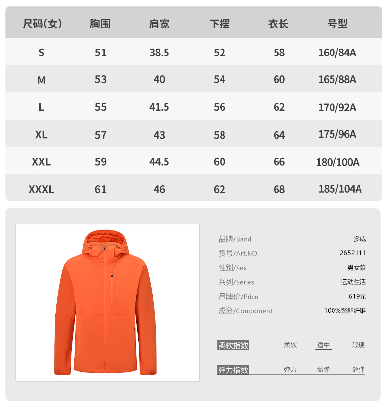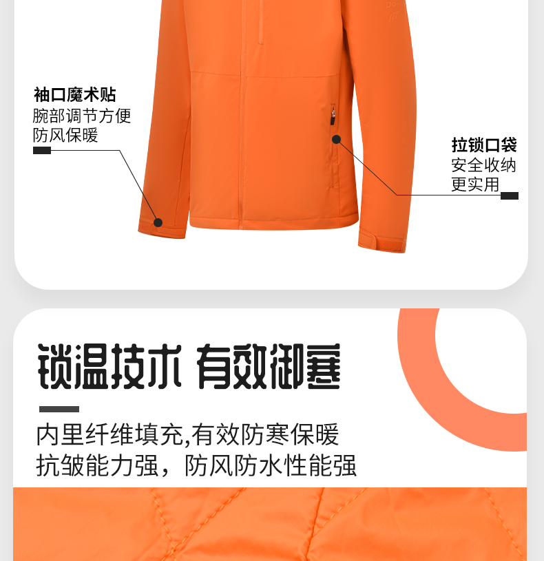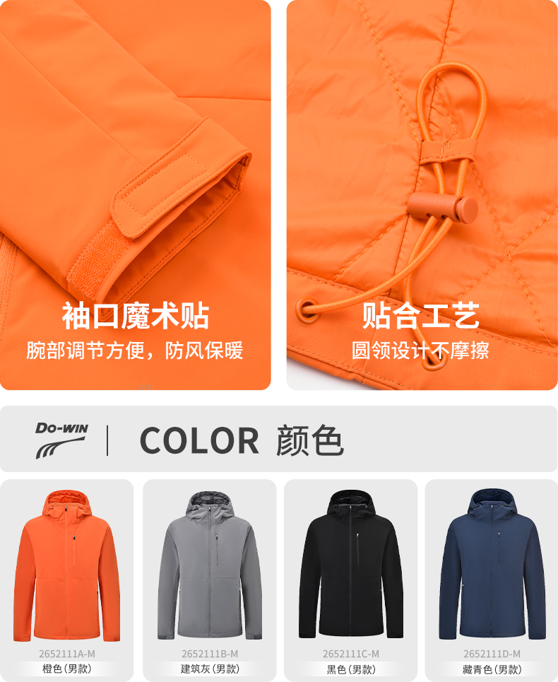 多威连帽外套男新款棉夹克女户外防风保暖运动上衣2652111