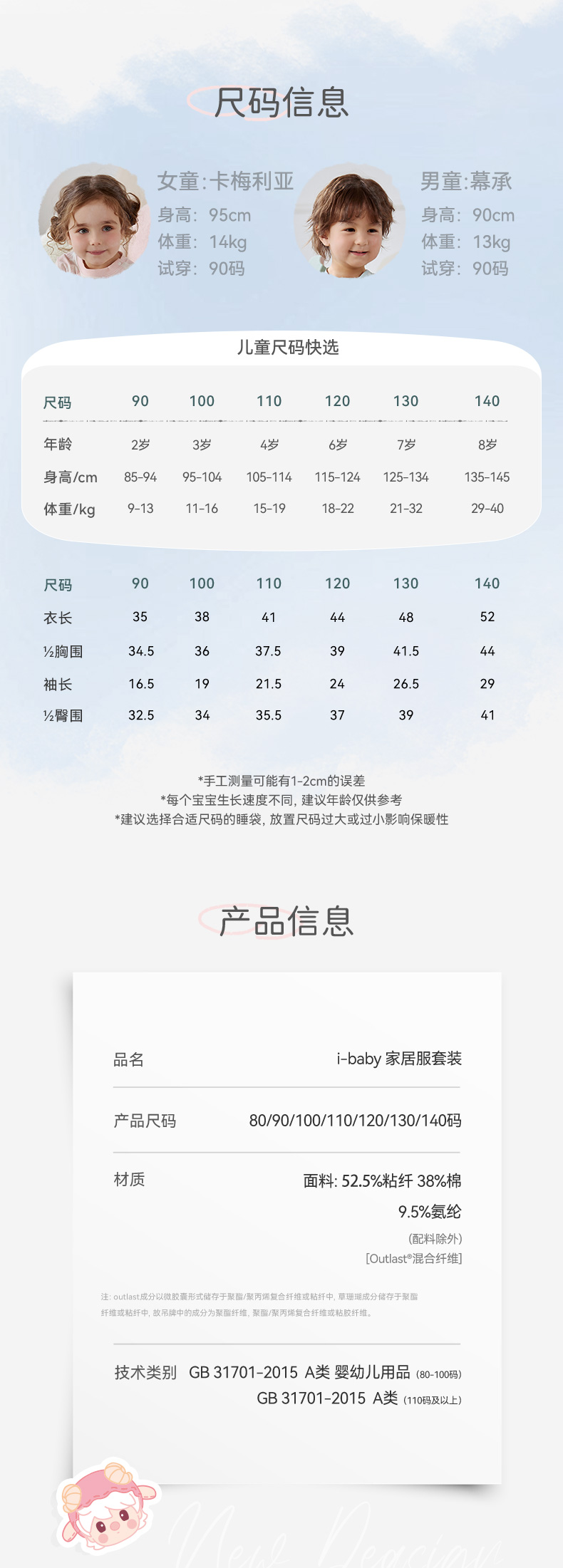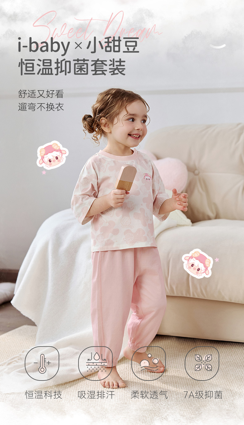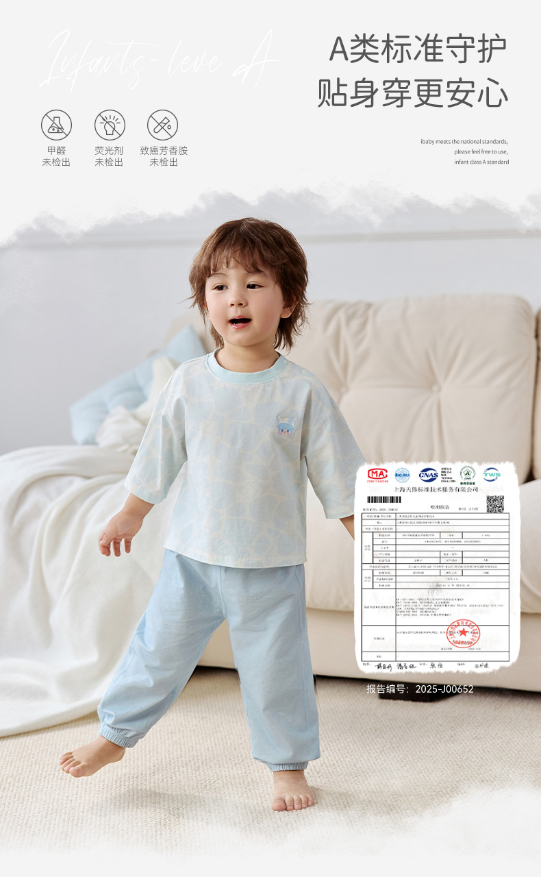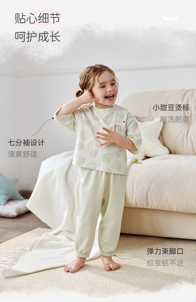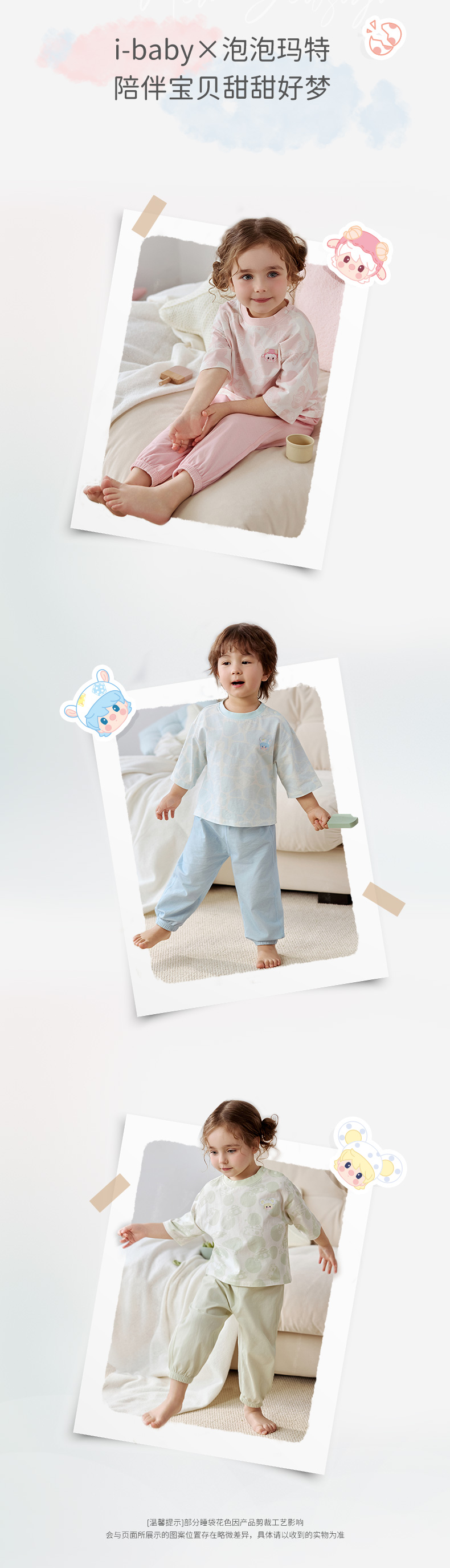 【2025春夏新品】i-baby/英伦宝贝泡泡玛特针织抑菌恒温七分袖长裤套装儿童睡衣男童女童家居服吸湿透气