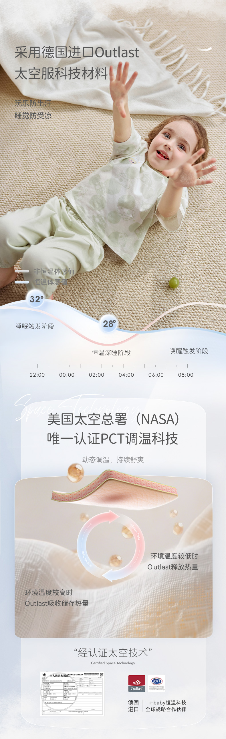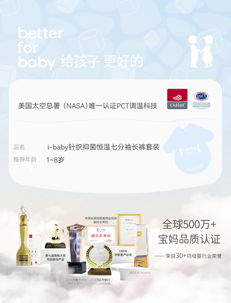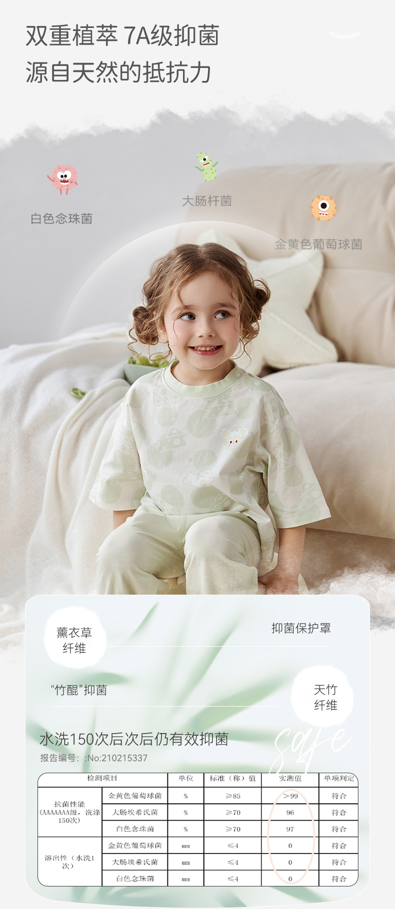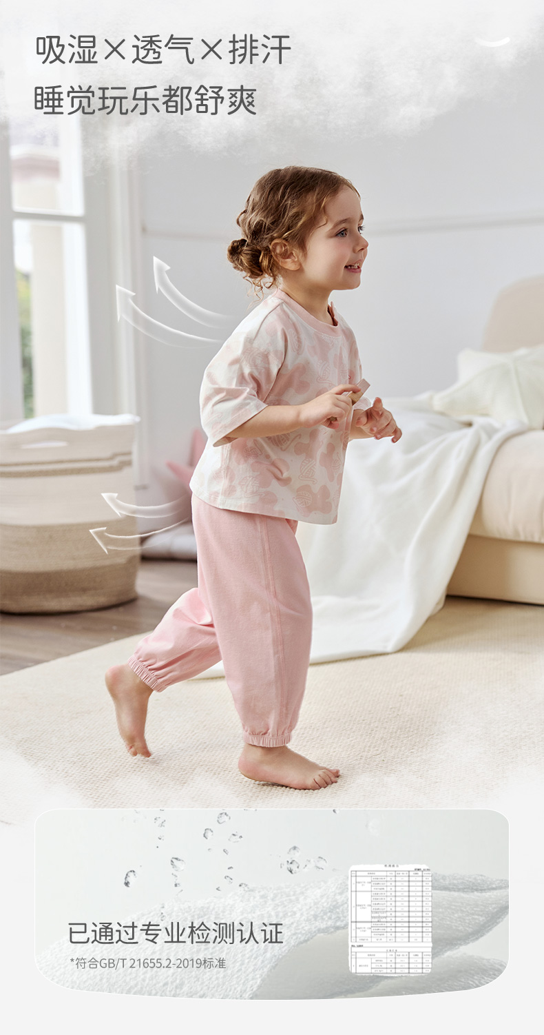 【2025春夏新品】i-baby/英伦宝贝泡泡玛特针织抑菌恒温七分袖长裤套装儿童睡衣男童女童家居服吸湿透气