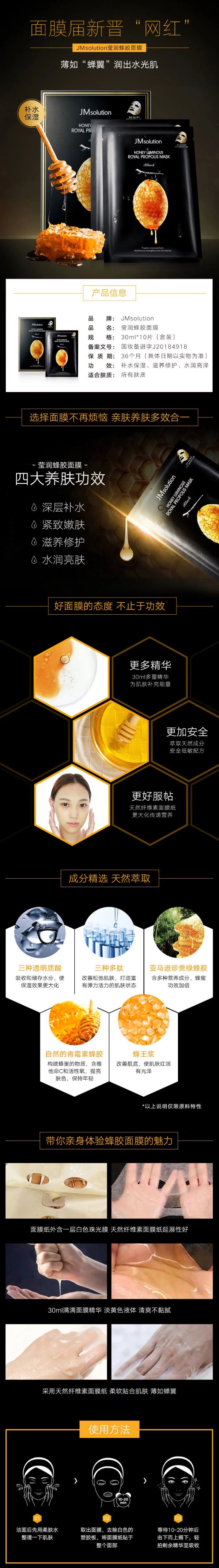 韩国进口肌司研 莹润蜂胶面膜(黑臻版) 30ml×10片/盒