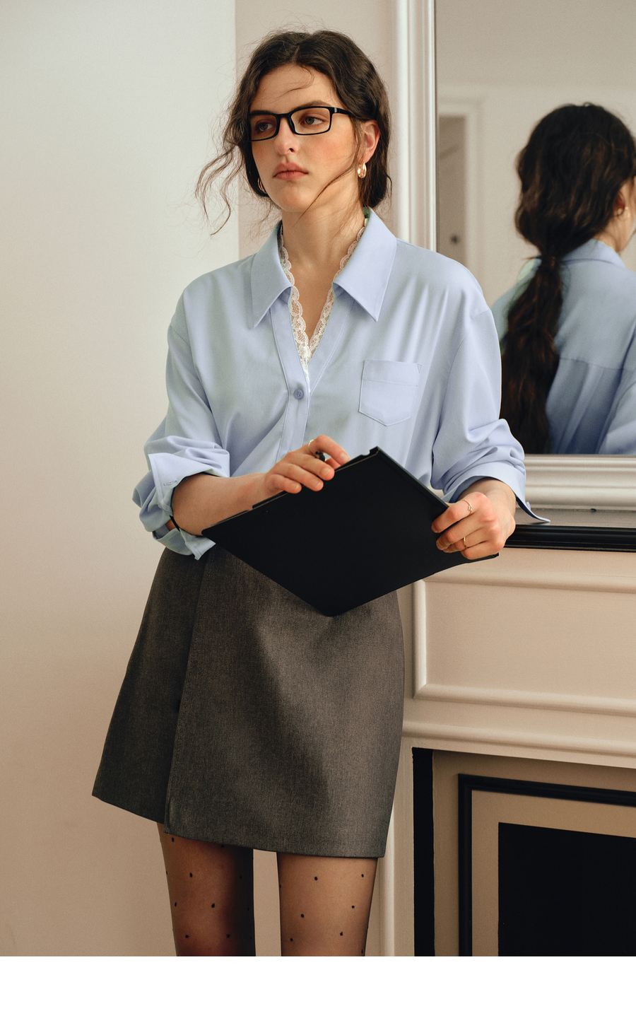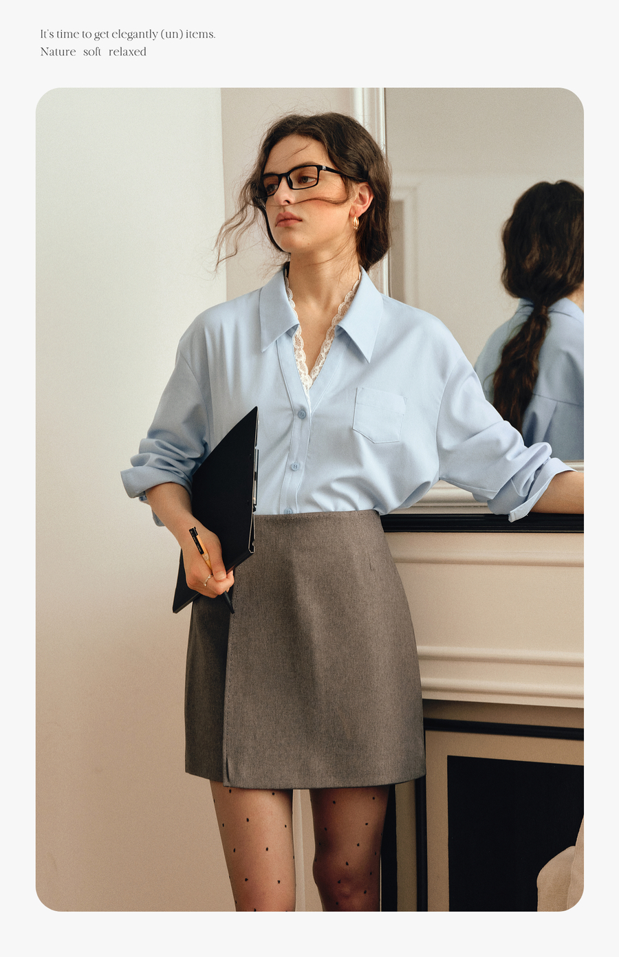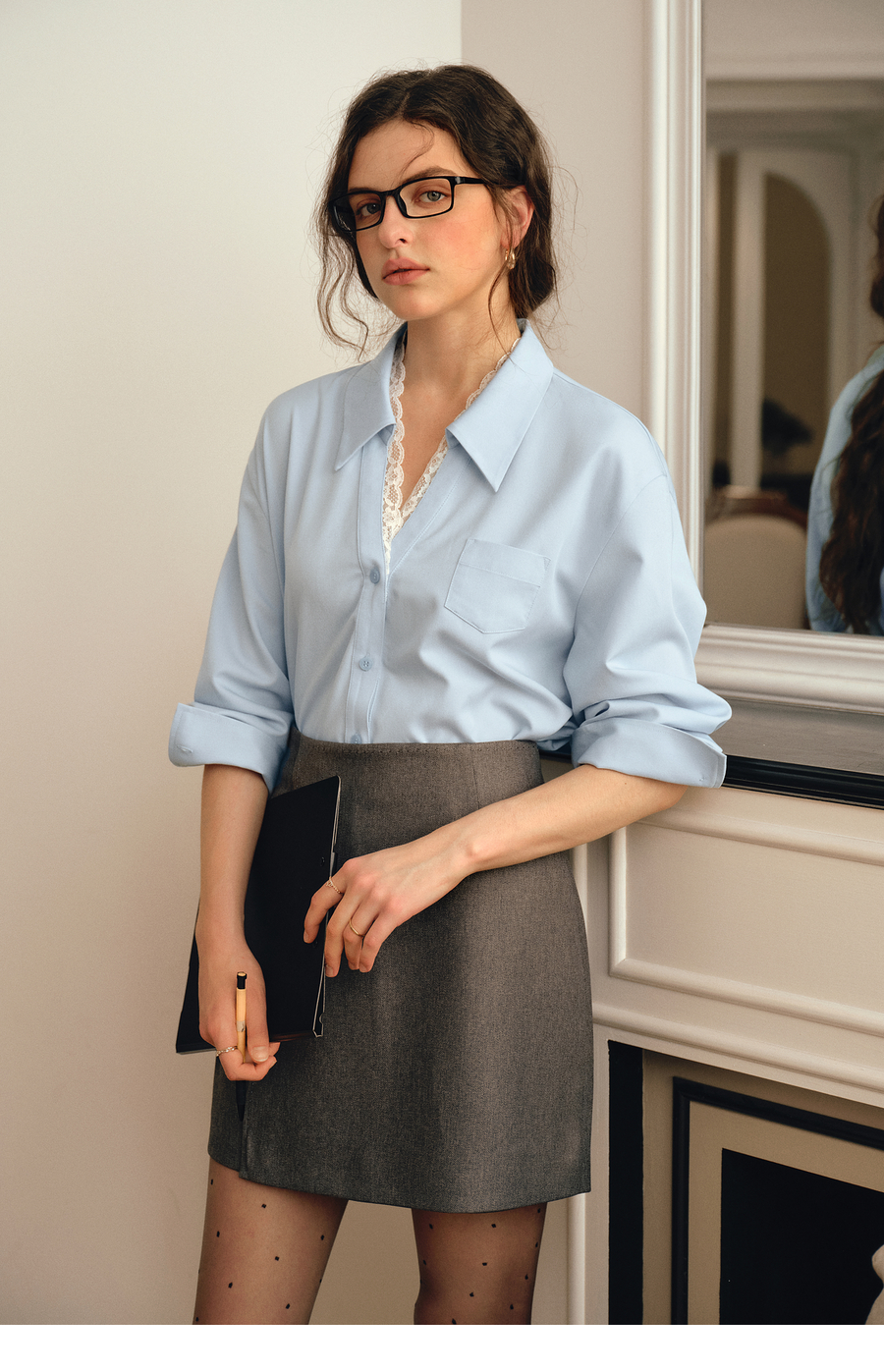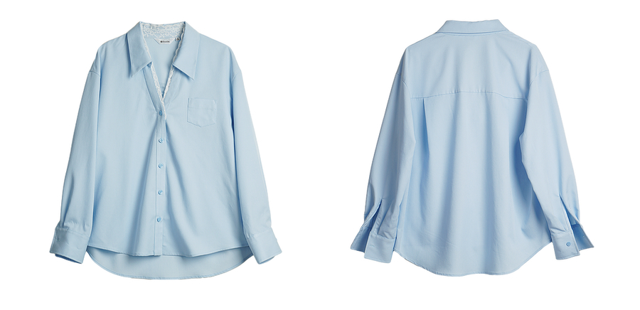 OLrain欧芮儿2025新款女秋季法式蓝色拼接蕾丝花边衬衫长袖衬衣