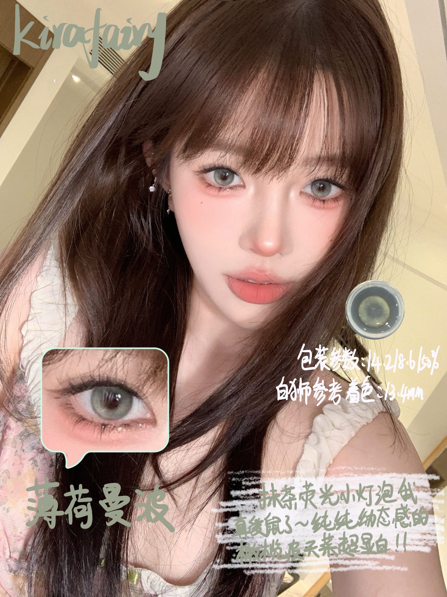 Kira Fairy日抛 薄荷曼波 14.2mm白狮参考着色中等直径 日抛 一盒10片