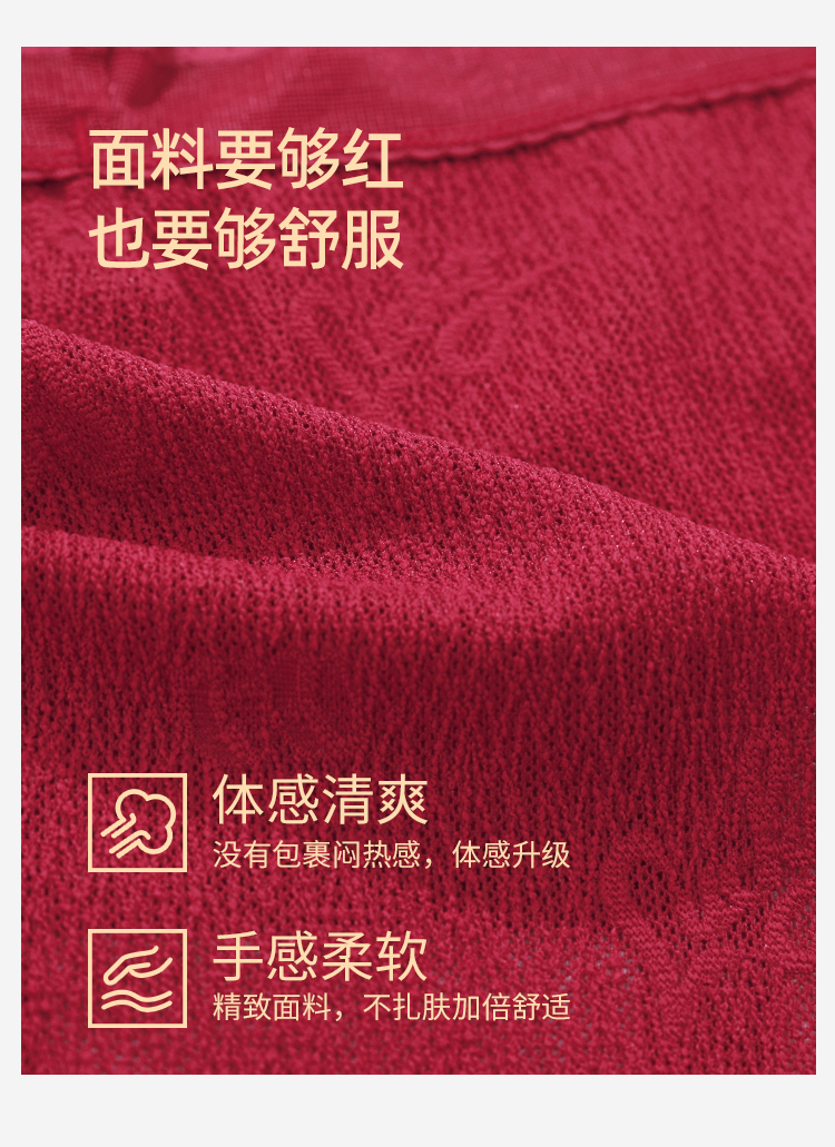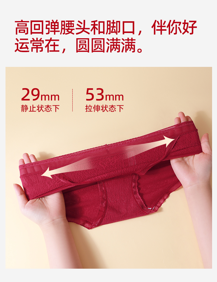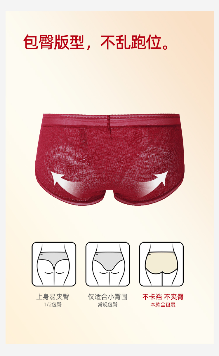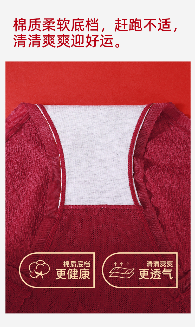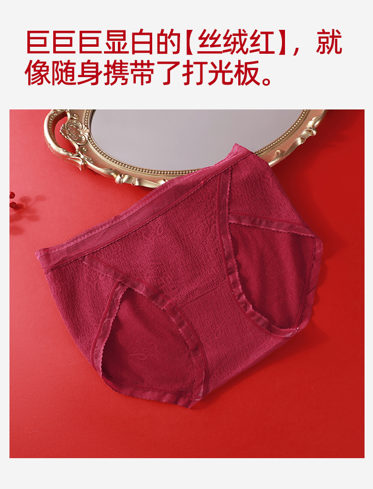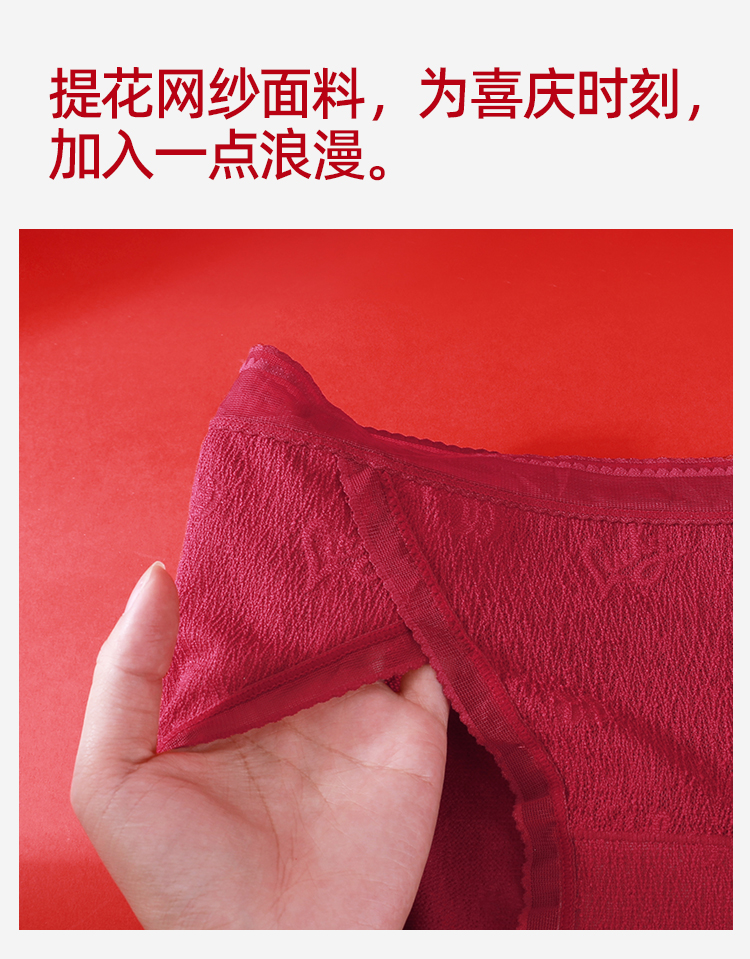 【3条装】熳洁儿 红色女士内裤新年本命年包臀蕾丝提花网纱24762125