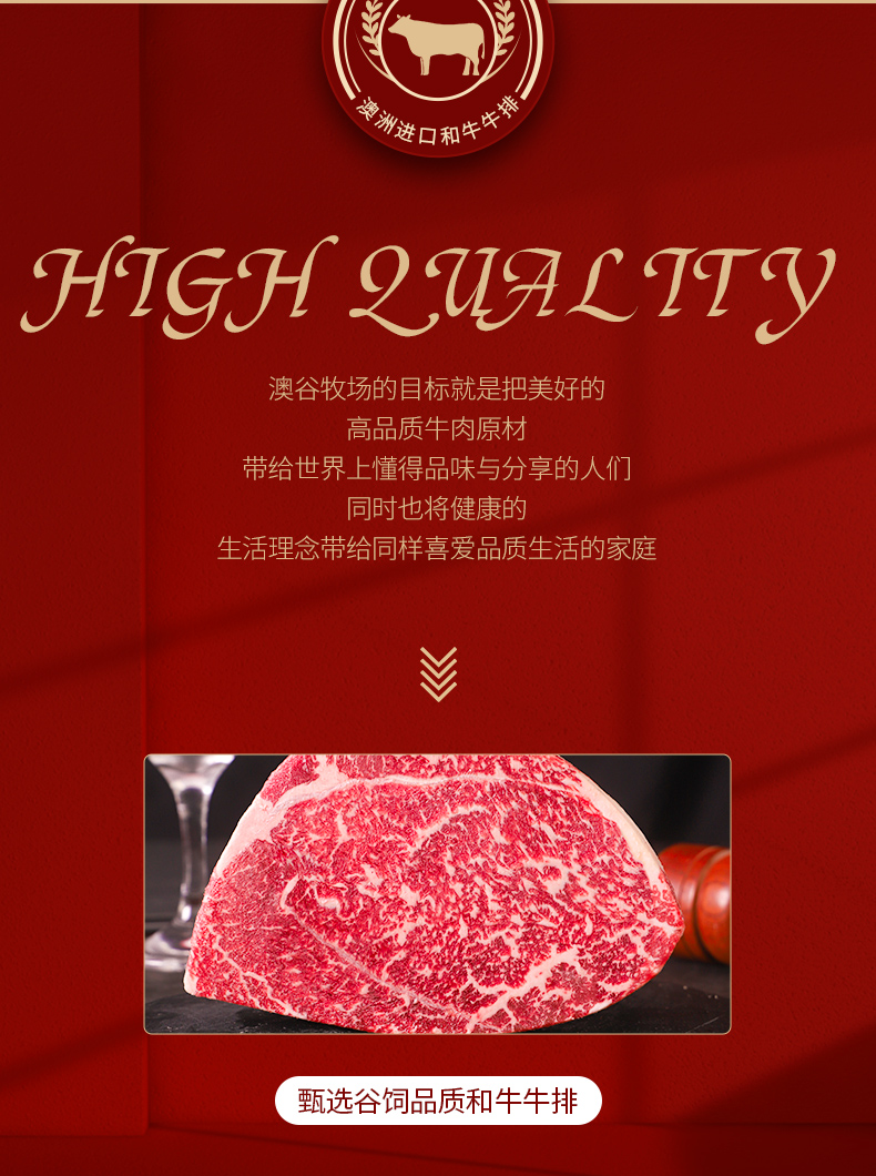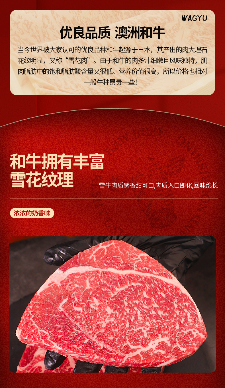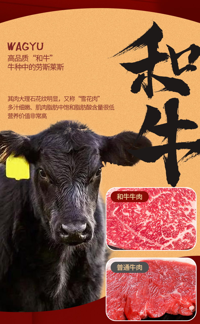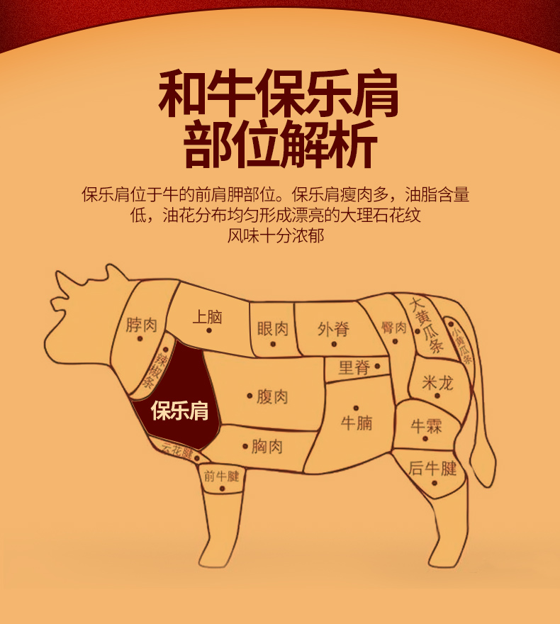 原切和牛m9雪花牛排保乐肩牛排3斤装金色托盘贴体包装