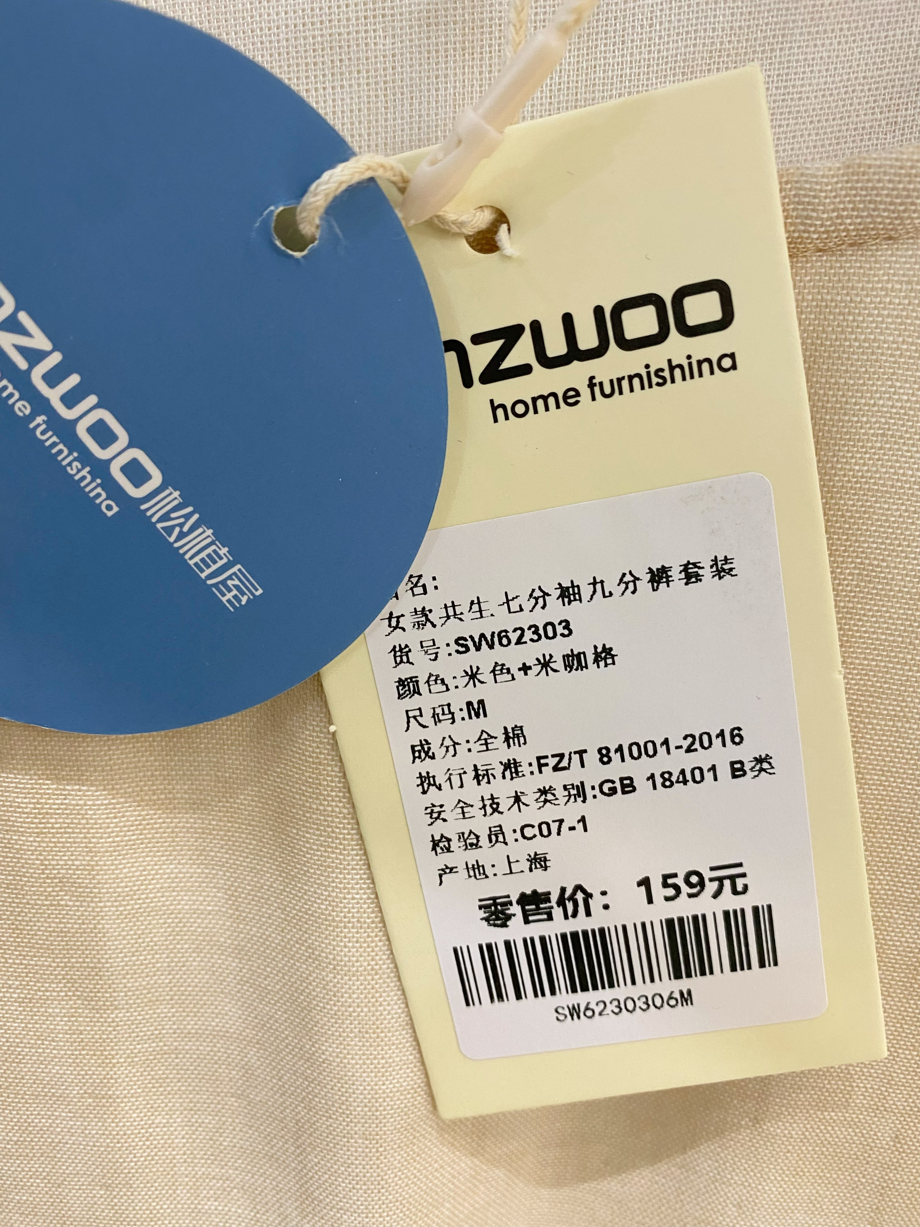 面料: 100%棉