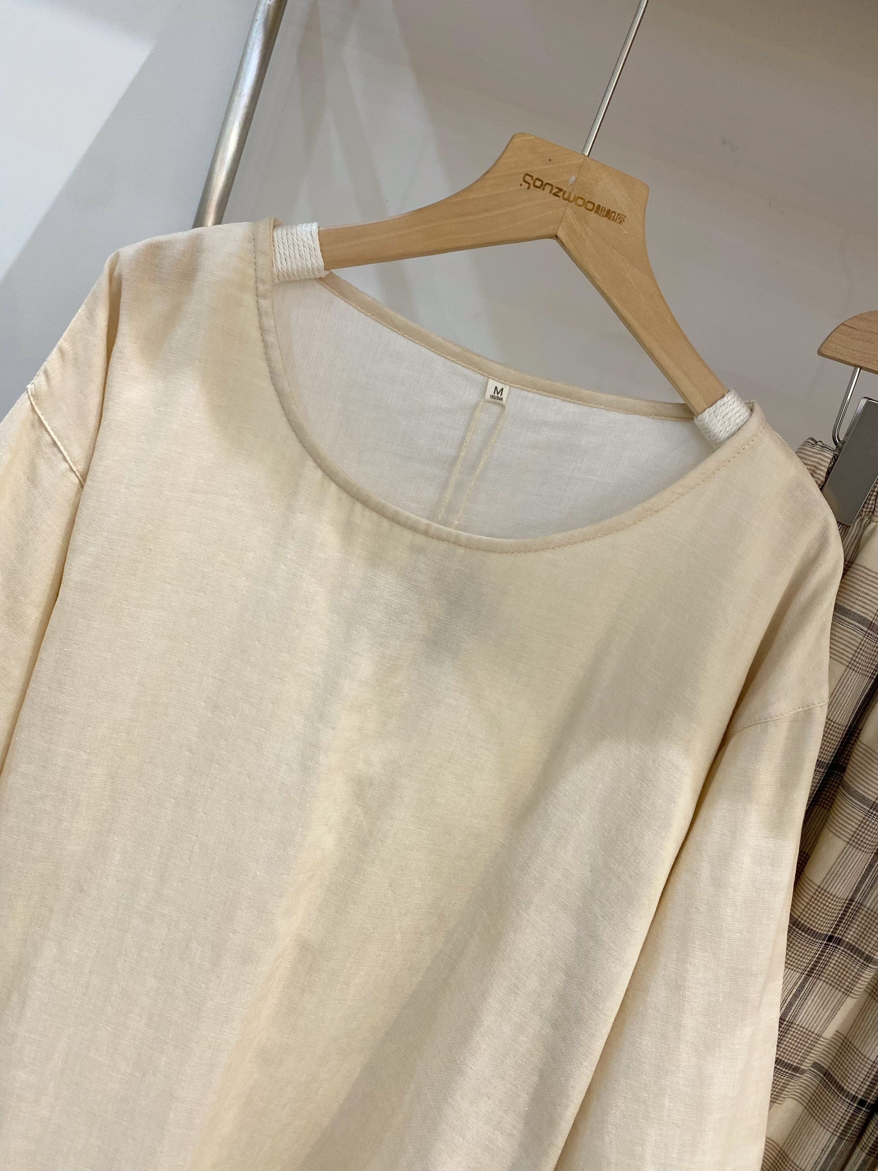 圆领设计温柔贴合,七分袖与九分裤剪裁清爽利落,双层纱面料柔软透气,居家外穿都合适~